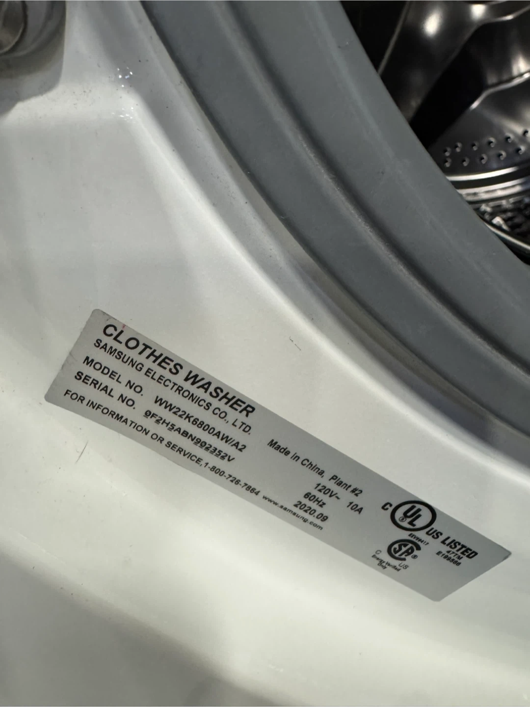 Selling a Samsung clothes washer and dryer model number WW22K6800AW/A2. It's in great working condition Pick up address unit 16 1610 derwent way, Delta Delivery and installation available
