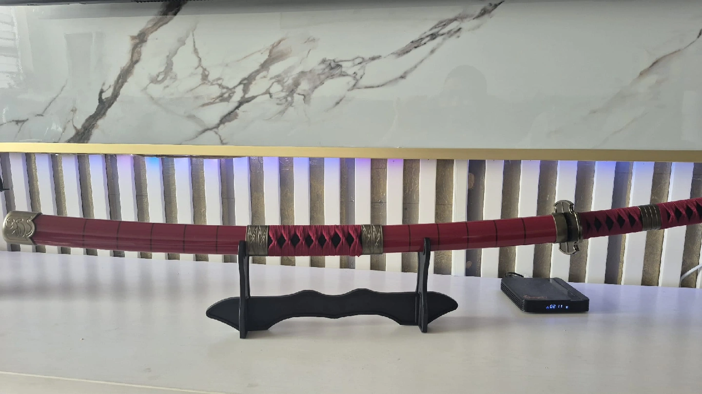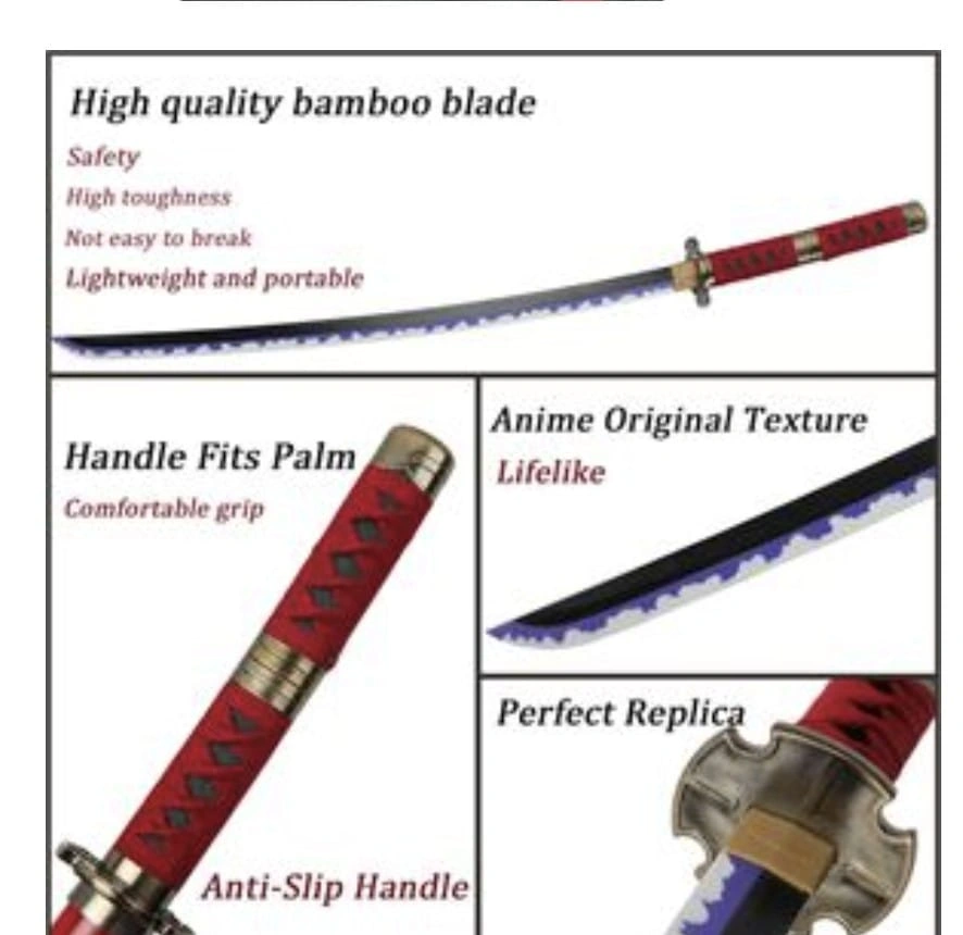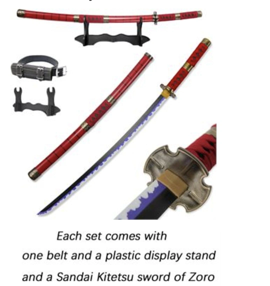 392Selling a Sandai Kitetsu sword of Zoro replica! It comes with a belt and a plastic display stand. The blade is made of high-quality bamboo, making it lightweight and portable. The handle is designed for a comfortable, anti-slip grip. It's a perfect replica with an anime original texture, making it lifelike!