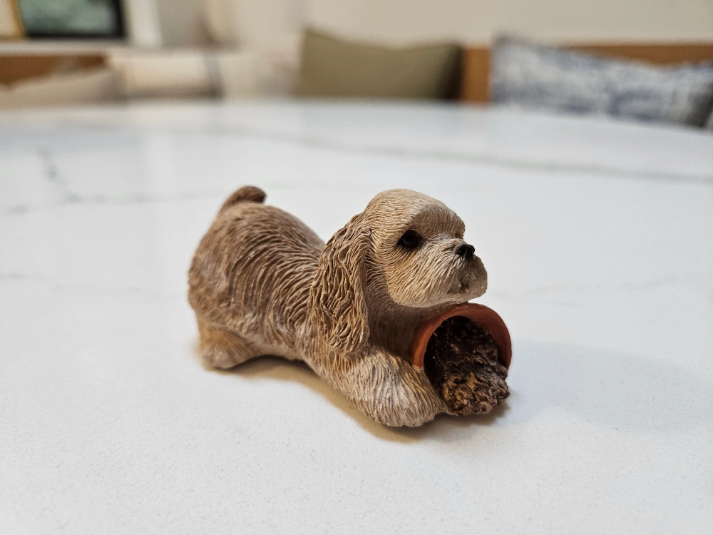 Sandicast Pesky Peepers Cocker Spaniel Buff figurine. This handcast and handpainted figurine was designed in San Diego, California. It's a charming piece to add to your collection or as a unique decor item