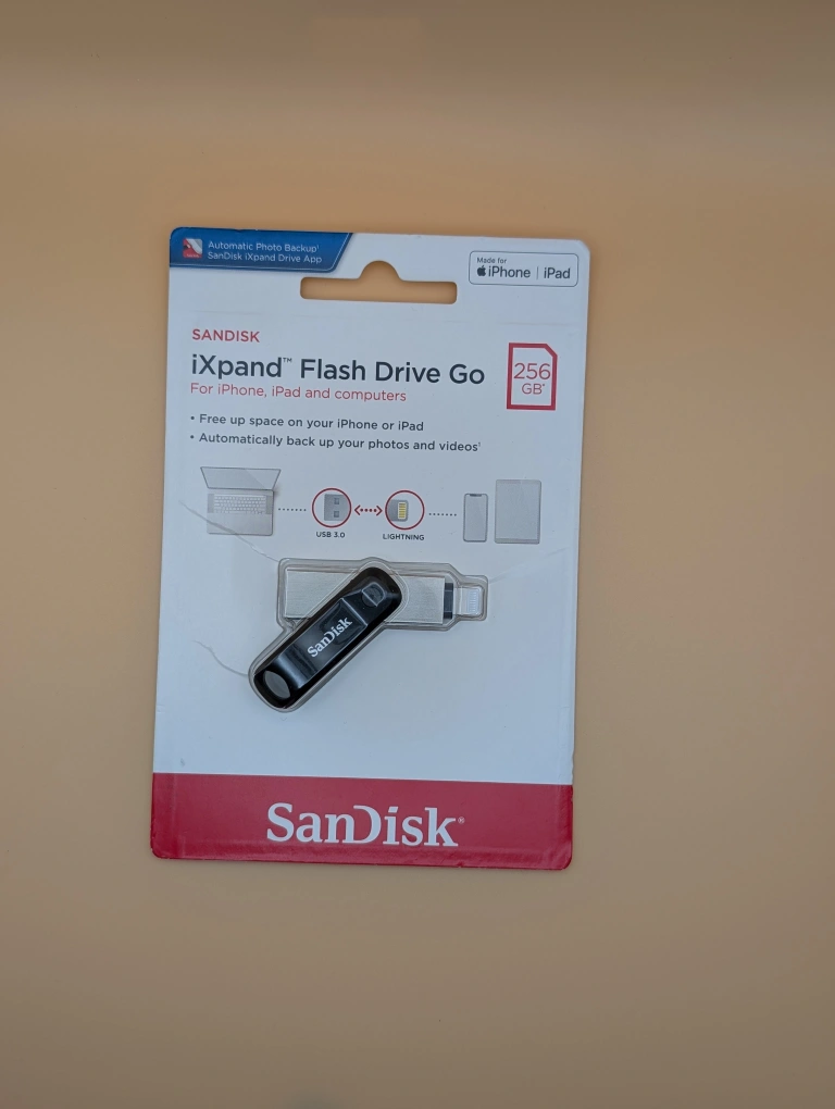 Selling a brand new SanDisk iXpand Flash Drive Go with 256GB of storage! It's perfect for iPhones, iPads, and computers. You can easily free up space on your iPhone or iPad and automatically back up your photos and videos. It supports USB 3.0 and Lightning connections. Never opened!