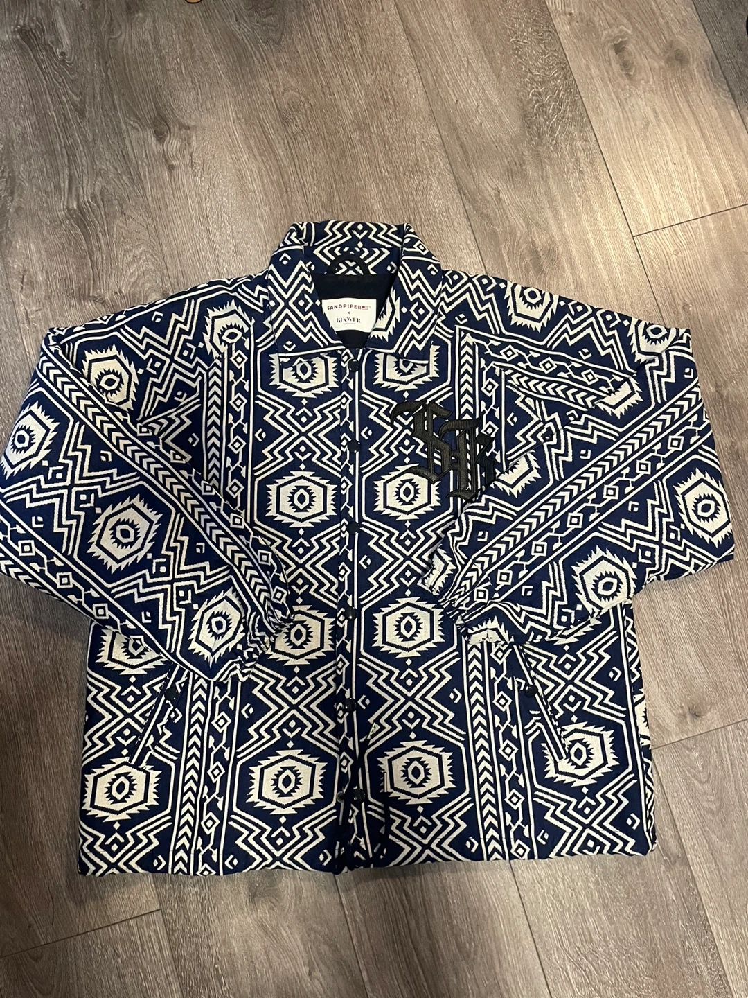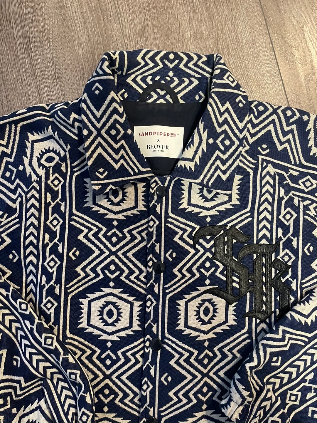 10Condition : GENTLY USED Size: M Retail price : 200$ Korean brand collaboration, inner logo label, oversized fit, poly•cotton blended jacquard fabric, cowhide leather label