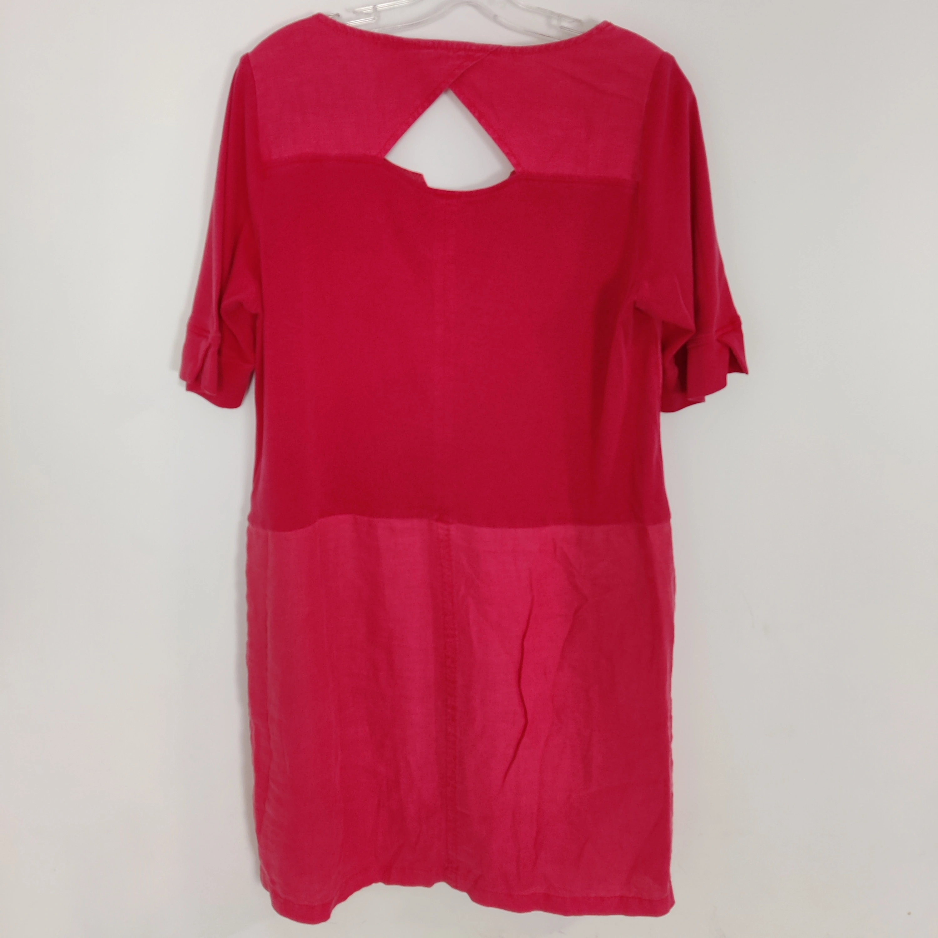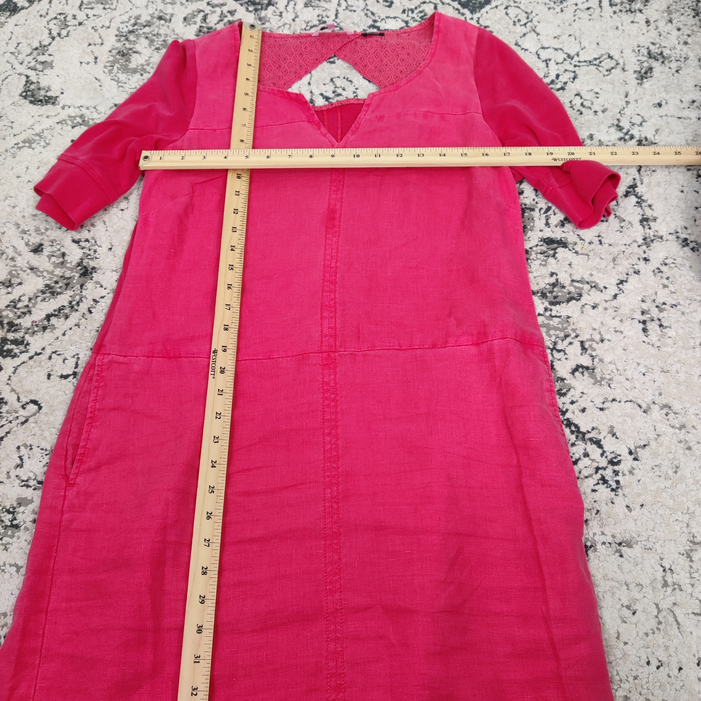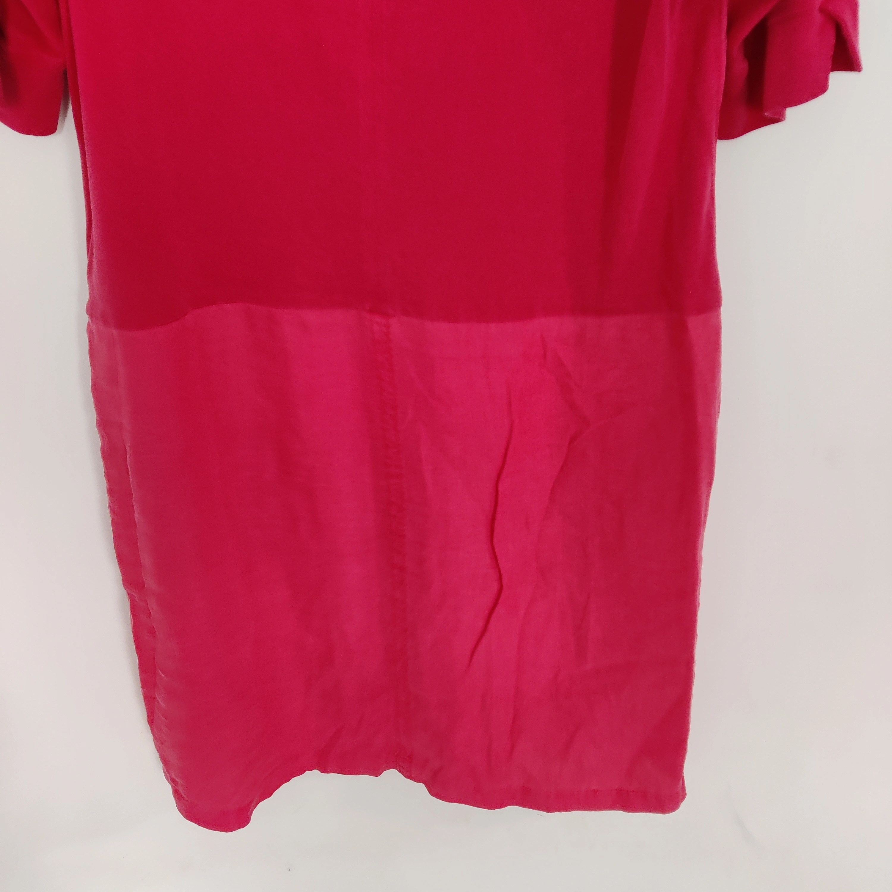 10Half sleeve Cut out back Its color is dark pink or dark coral EU size is 42, estimated US size is 10. Please refer to measurements. Comfortable fit. In good used condition Measurements are approximate and taken laying flat Follow me on Instagram @renewifyupcycle for unique upcycled items Old Money Quiet Luxury Elegant Chic Sophisticated Mafia Boss Bohemian Cottagecore