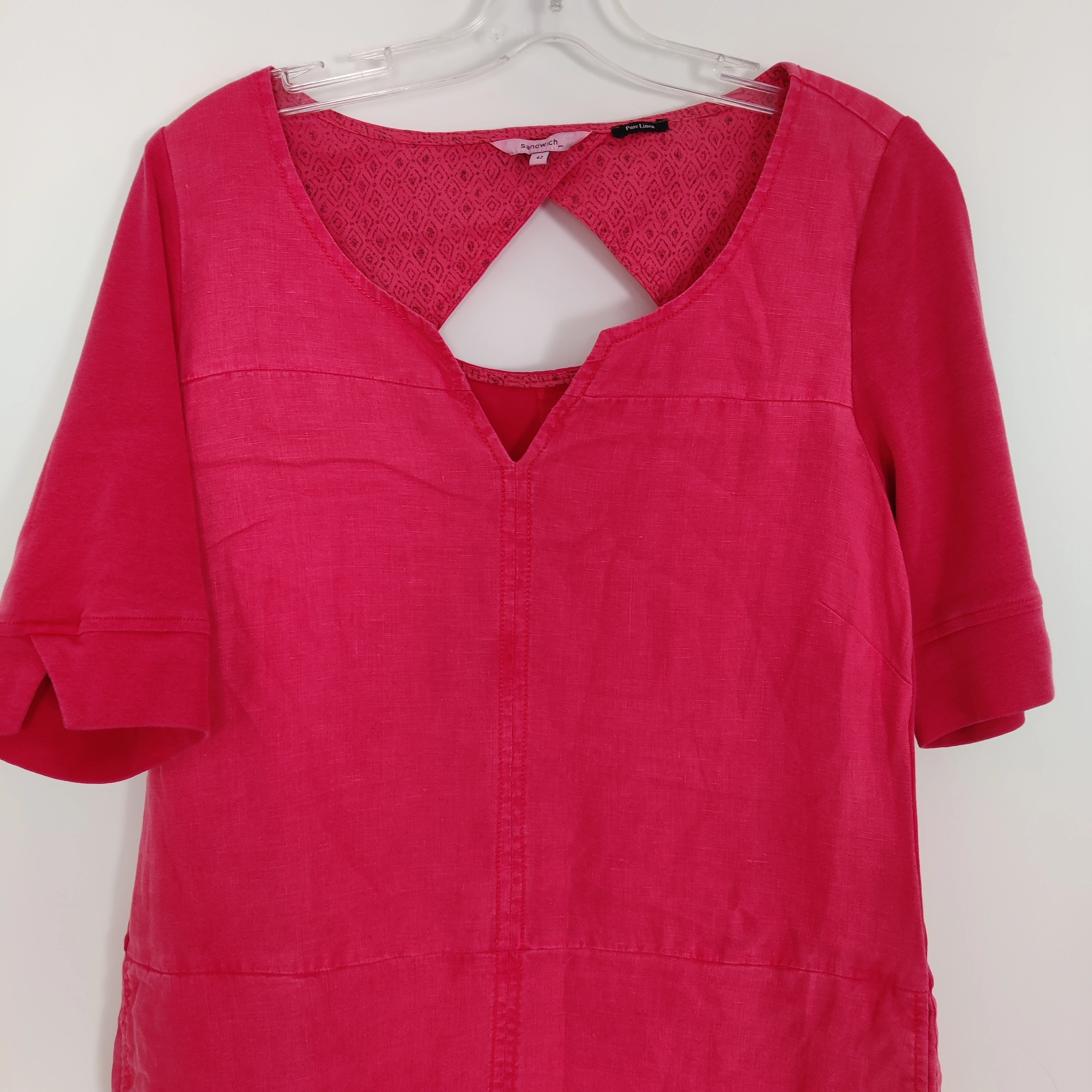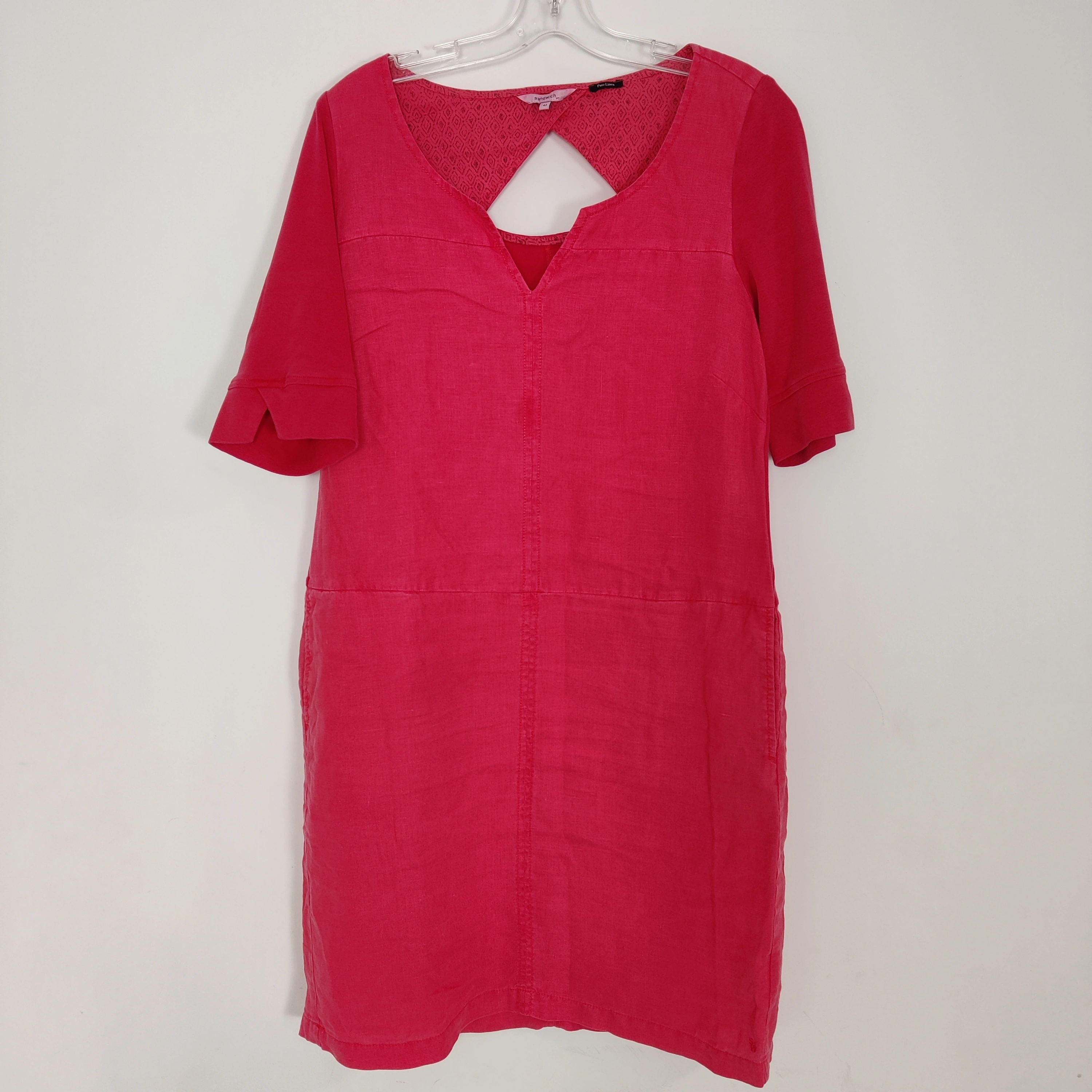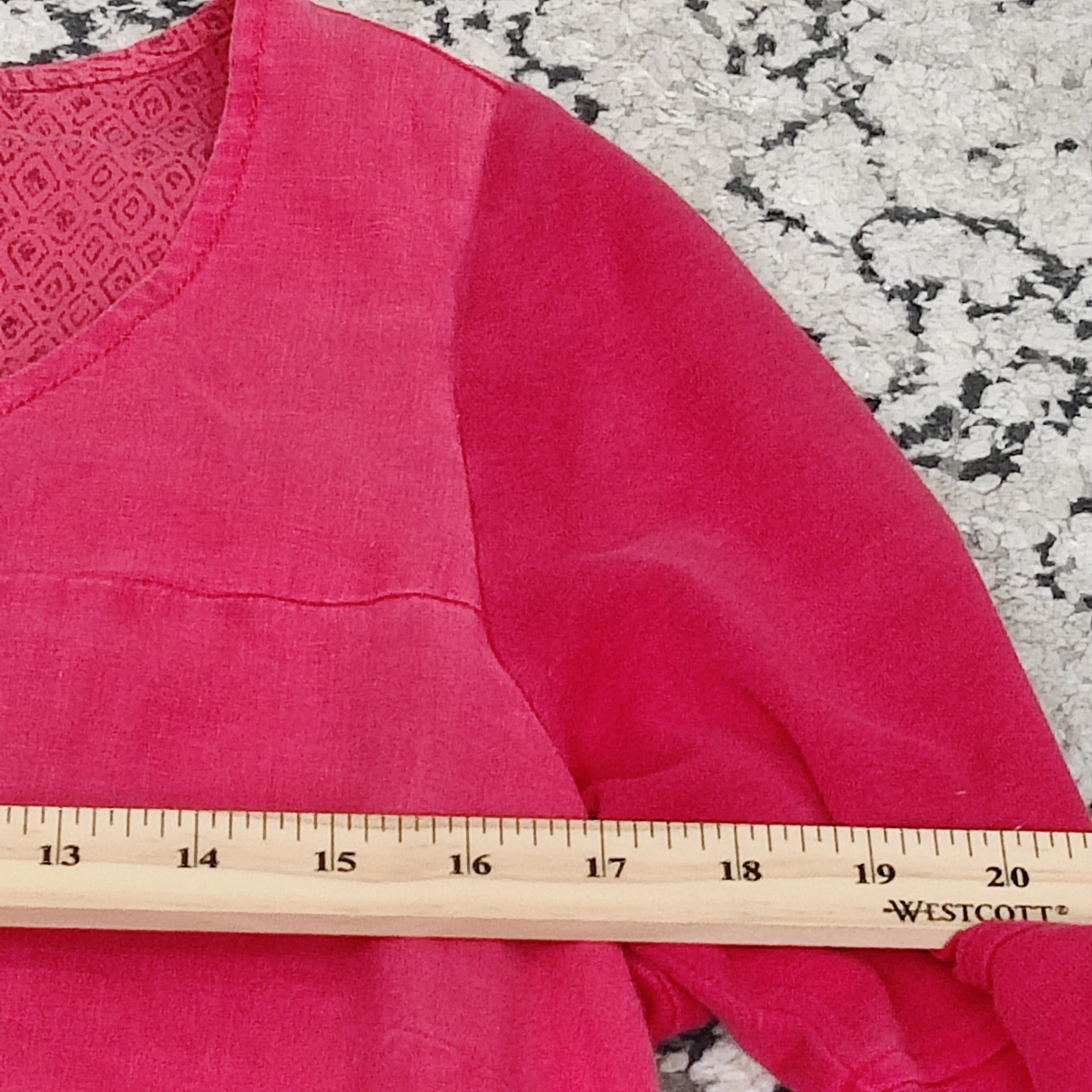 10Half sleeve Cut out back Its color is dark pink or dark coral EU size is 42, estimated US size is 10. Please refer to measurements. Comfortable fit. In good used condition Measurements are approximate and taken laying flat Follow me on Instagram @renewifyupcycle for unique upcycled items Old Money Quiet Luxury Elegant Chic Sophisticated Mafia Boss Bohemian Cottagecore