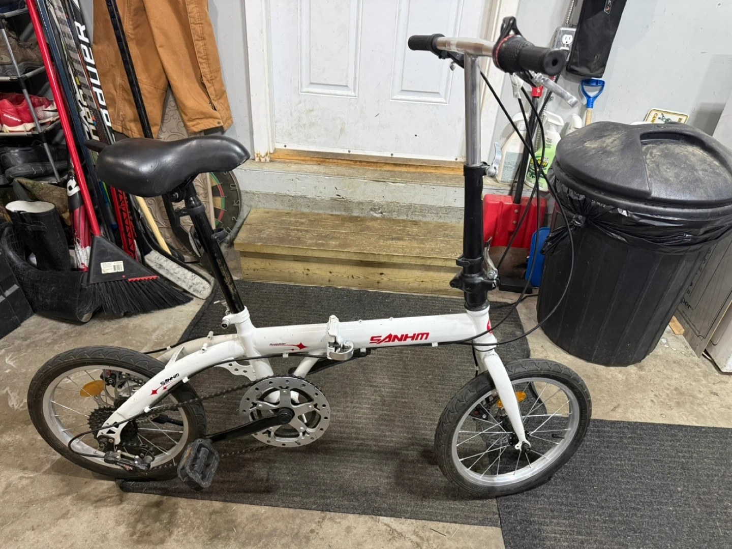 Selling a white Sanhm folding bike. It's perfect for anyone needing a compact and portable ride. Great for city commuting or storing in small spaces. The bike is in good condition and ready to go! Bought it off Karrot but not exactly what hubby wanted