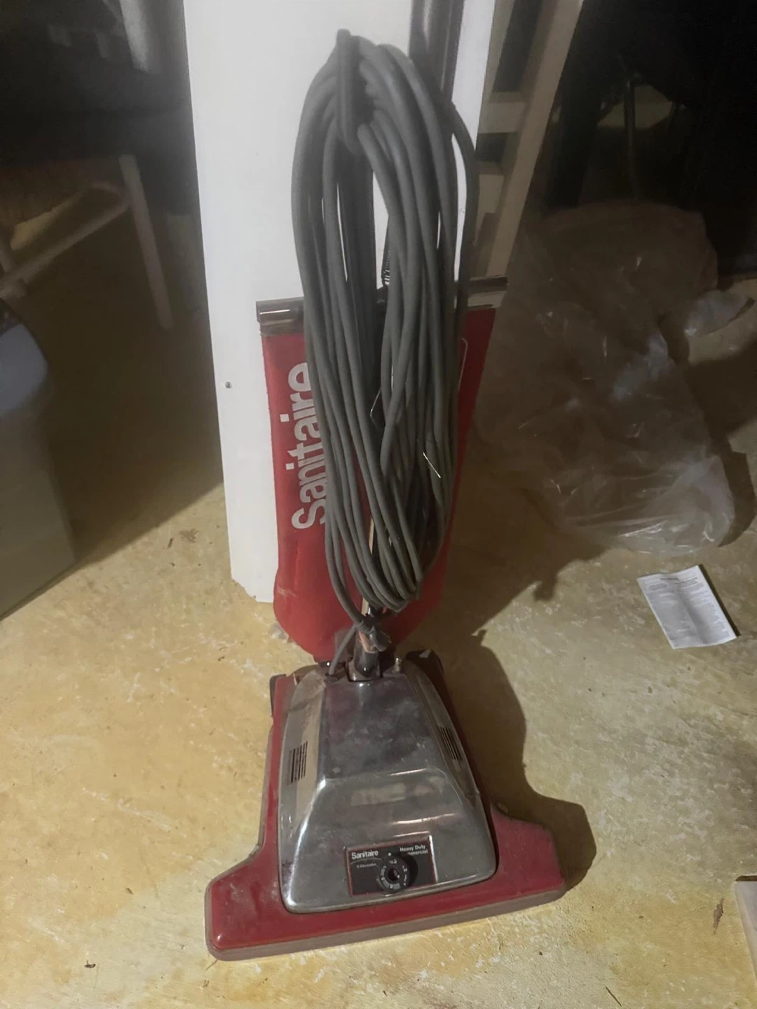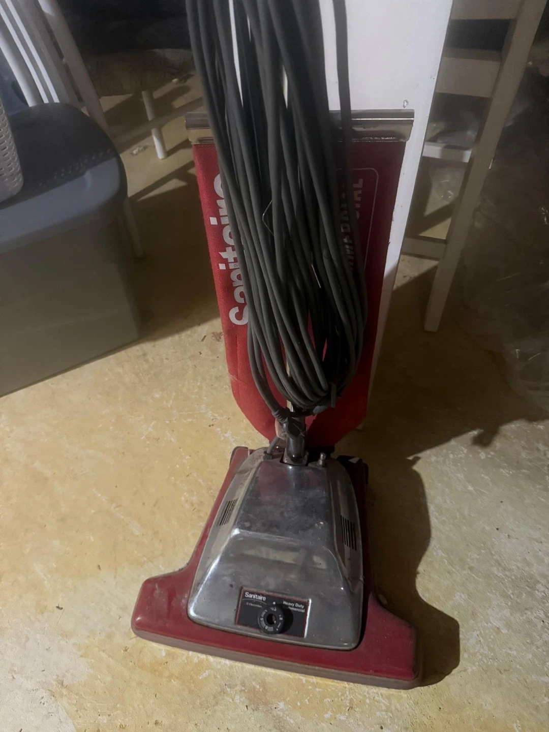 10Sanitaire Heavy Duty vacuum cleaner. It's red and silver and in used condition. Great for cleaning!