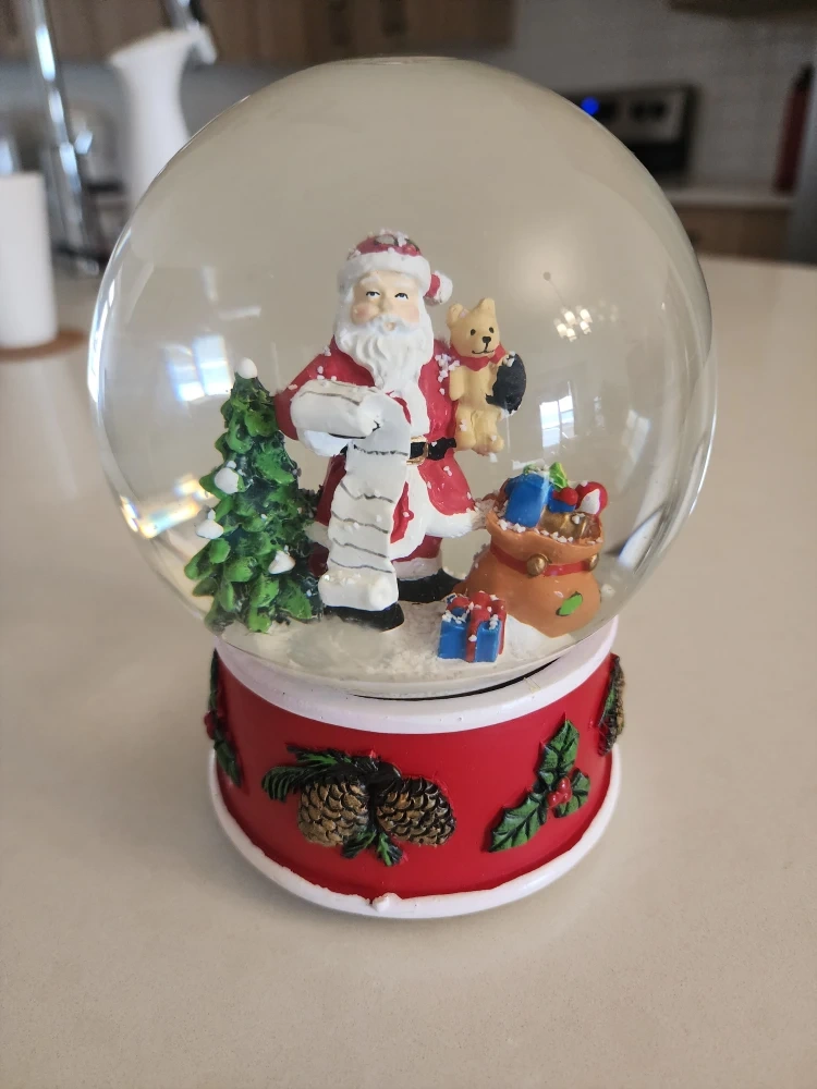 15This charming Santa snow globe from Home Sense would make a lovely addition to your holiday decor! It features Santa, a Christmas tree, and a teddy bear inside a clear glass globe, all on a decorative red base. Originally bought for $24.99