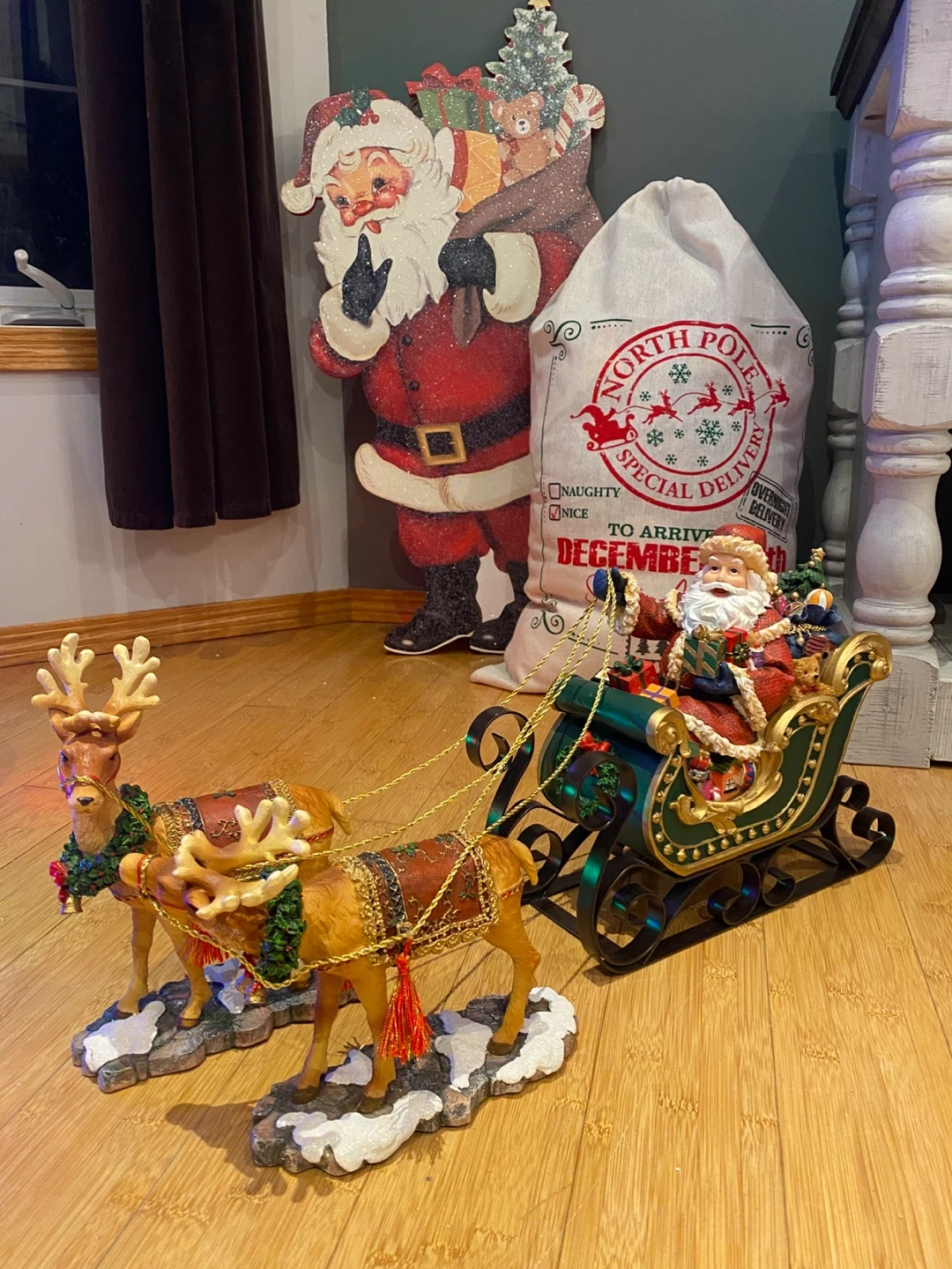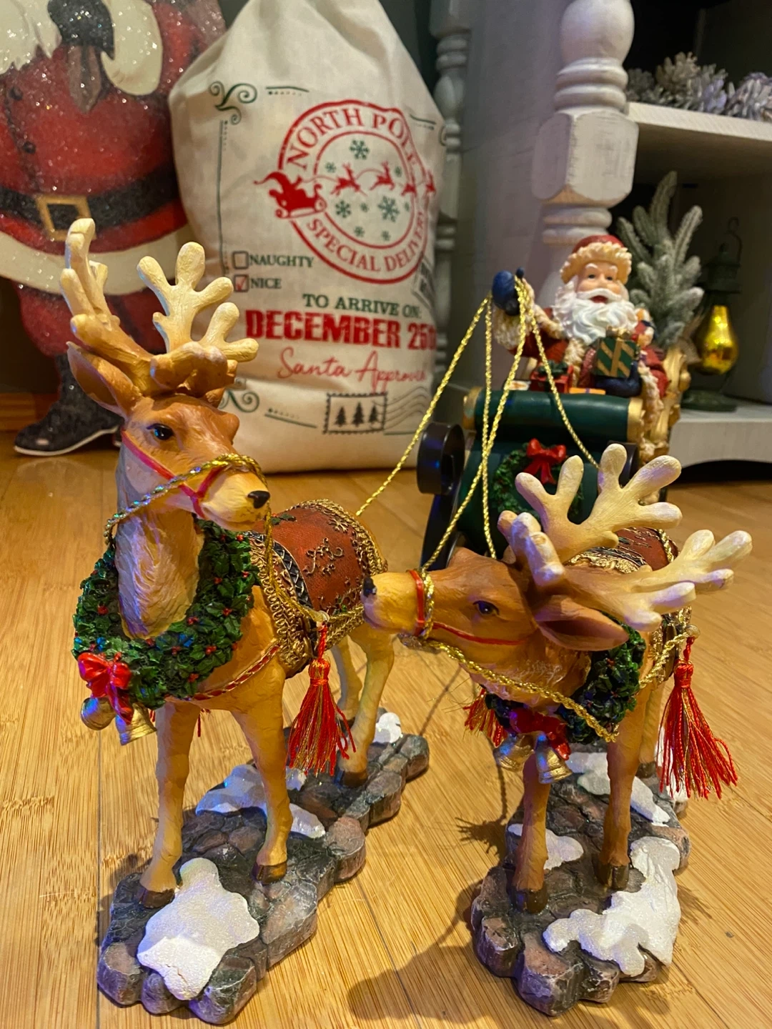 20Selling a charming Santa's Sleigh figurine set! This set contains 3 pieces and is perfect for holiday decorating