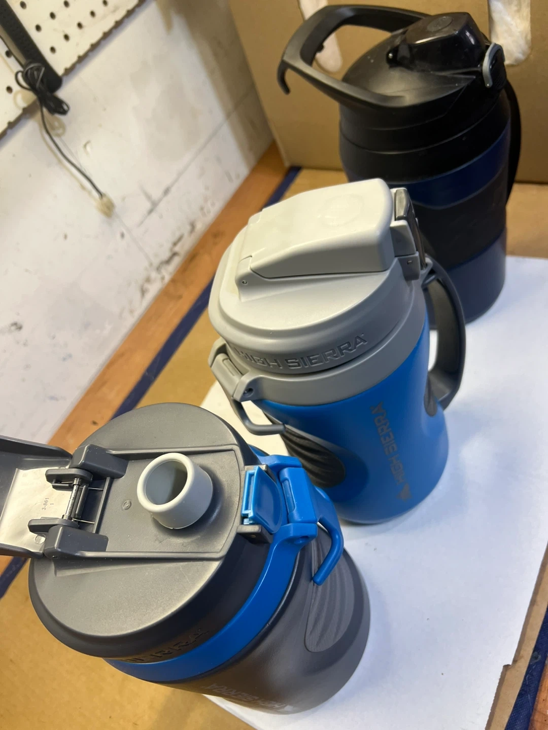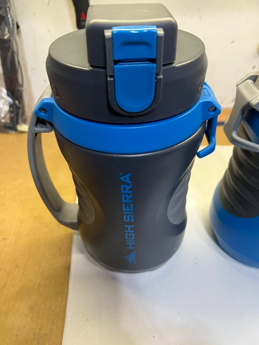 This High Sierra water bottle comes with a convenient handle for easy carrying. It's designed for active use and hydration on the go. The bottle features a secure lid and a durable build. 2 high sierra , 1 under armour 1.9Litres (64oz) each $10 each .