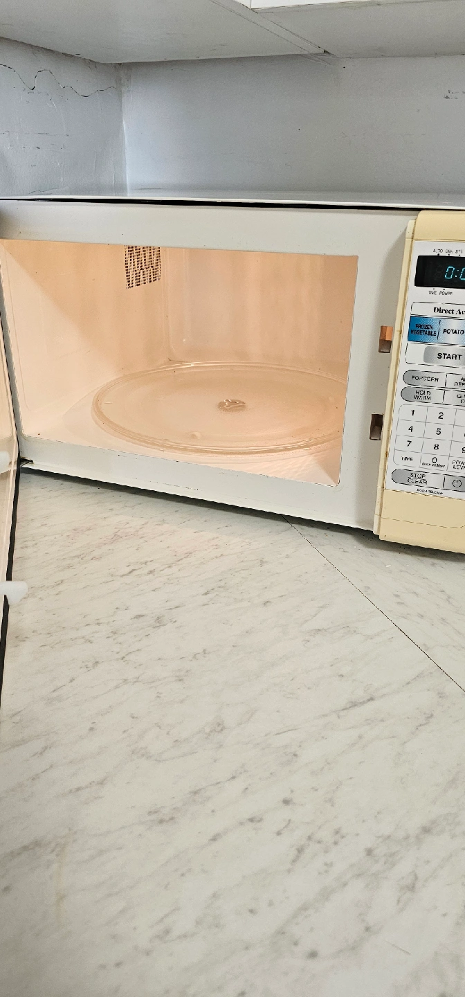 Selling a Sanyo microwave. It's in good working condition and ready for a new home. It has some wear and tear, as shown in the pictures.