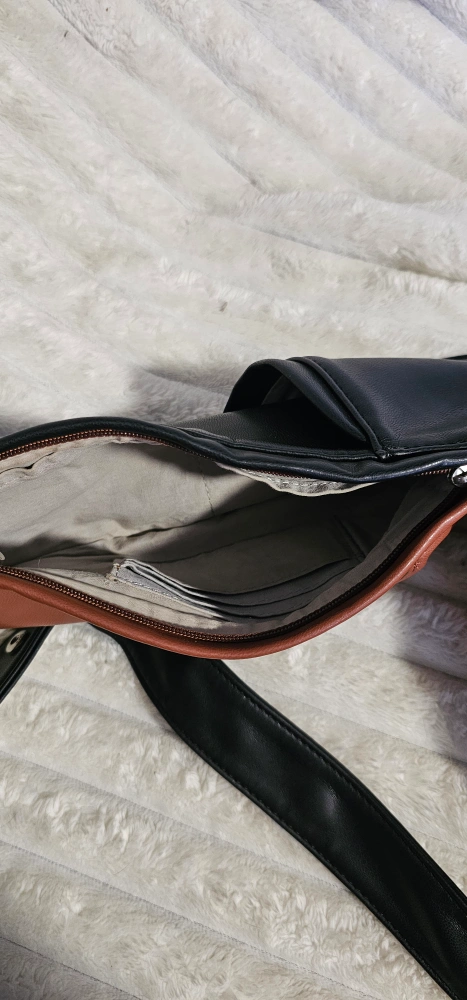 The last bag you'll ever buy - Sash Bag in the classic black/brown reversible faux leather. 10 ergonomically designed pockets Adjustable strap to fit all sizes Secure, hidden cash pocket Zippered passport pocket Like new