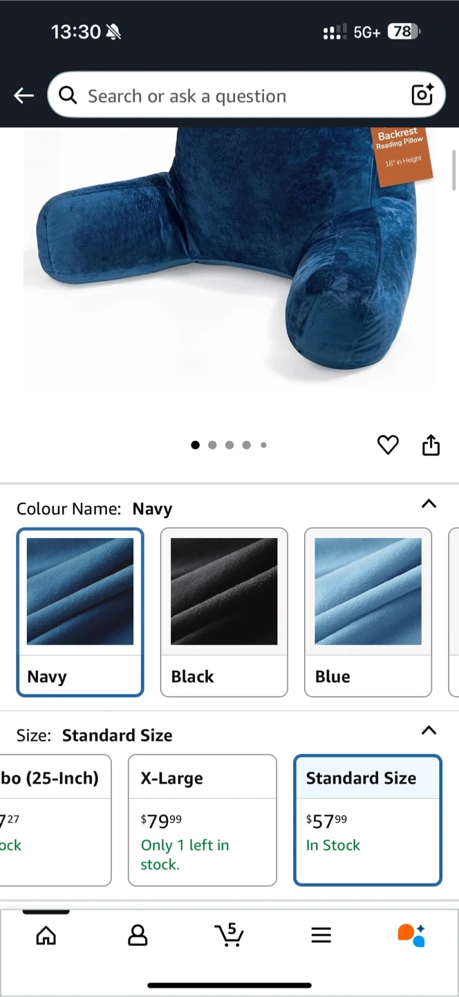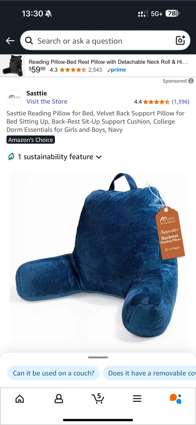115This Sasttie reading pillow is in navy and a standard size. It's designed for bed or back support while sitting up. It's a velvet back support cushion, perfect for college dorm essentials for girls and boys. The pillow is 18 inches in height, 15 inches in width, and 11 inches in depth.