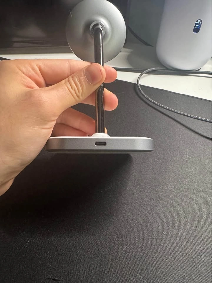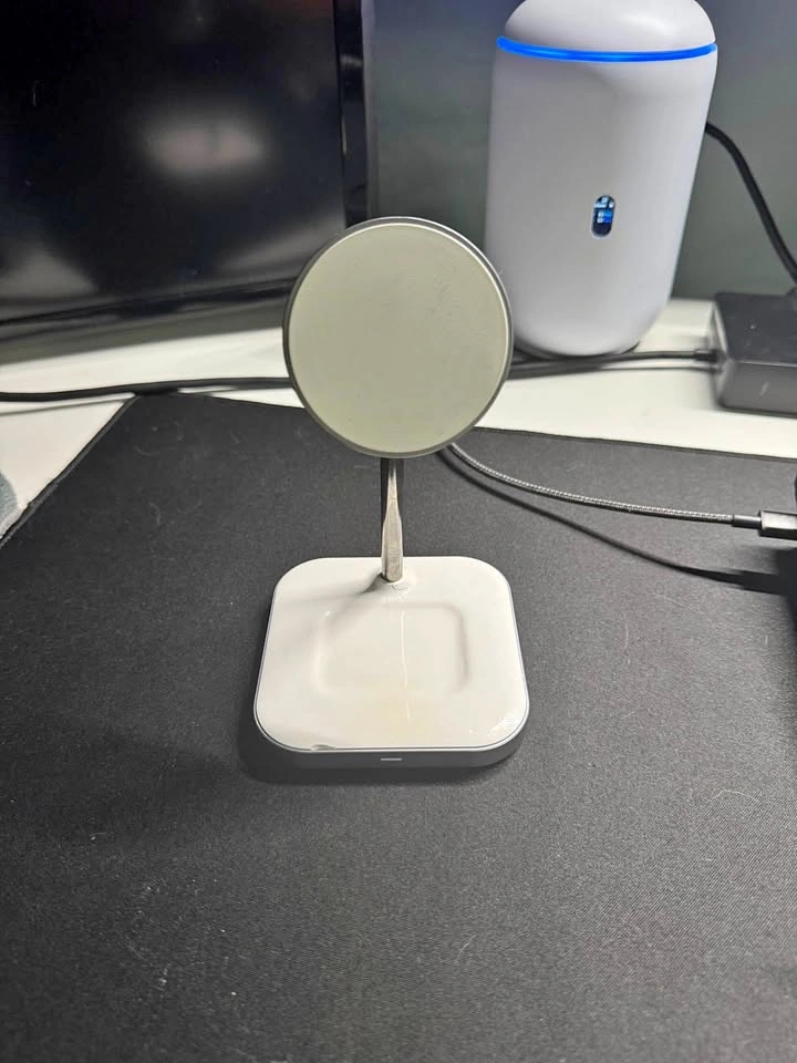Used 2 in 1 charger for MagSafe iphone and AirPods. The bottom charger will charge any qi 2 compatible earbuds. Has the light indicator. Comes with USB-C 1 charging cable if your choice. Requires 20 watt charging adapter. Bought in June 2023. CASH ONLY.