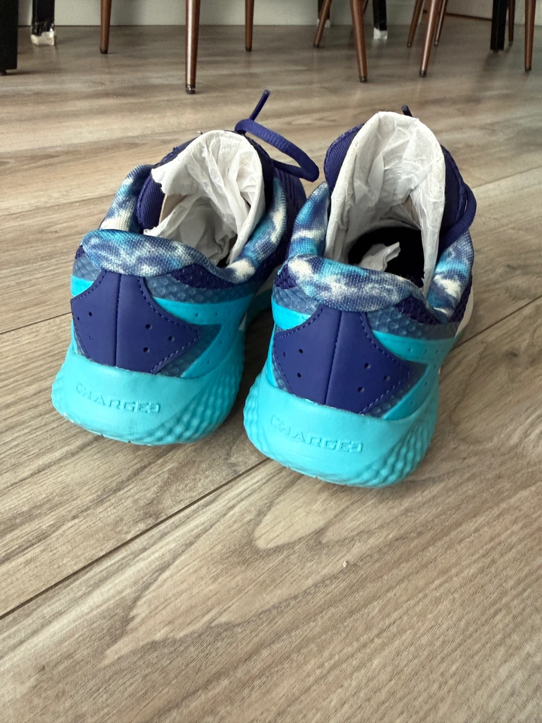 Under Armour Charged Rogue 3 running shoes in a blue and teal colourway.