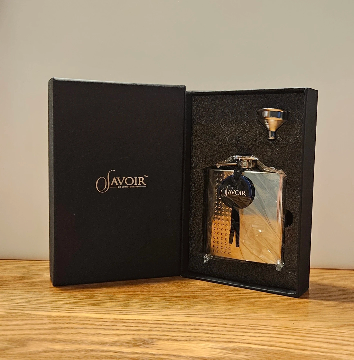 🥃 Savoir Stainless Steel Flask Gift Set – BRAND NEW IN BOX! 🎁✨ 🥕