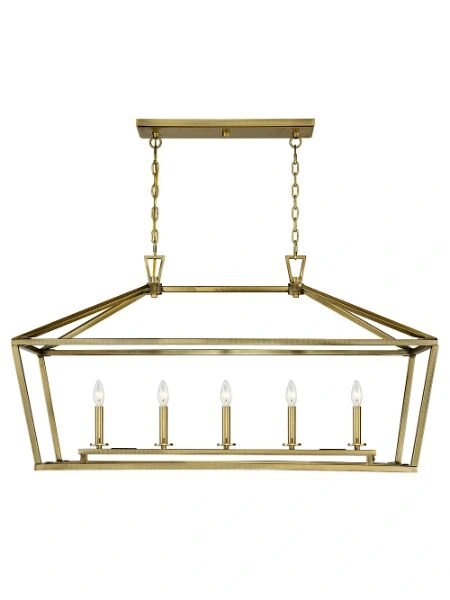 5We didn't need this fixture anymore for our house reno and weren't able to return it. Dimensions: 44" L x 16" W x 23.5" H The Savoy House Townsend 5-light trestle offers up a casual open lantern look that is the perfect addition for any space inside the home. Warm brass finish. Trestle lights are ideal for use over rectangular dining room tables or kitchen islands, but you can also use them in living rooms, great rooms, over pool tables and in media rooms, too. Bulbs not included. Try using stylized bulbs like Edison or tubular bulbs for a different look! The warm brass finish can be matched with brass hardware or mixed with hardware in other finishes. Townsend is a great option for adding a bold touch to rooms in transitional, farmhouse or classic style. When you choose a Savoy House lighting fixture, you can be certain you've selected a piece that will withstand the test of time.