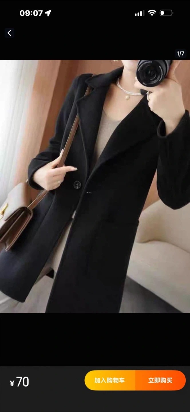 A classic black wool blend coat, perfect for layering. It's single-breasted with two front pockets. This coat is ideal for cooler weather. Size : L