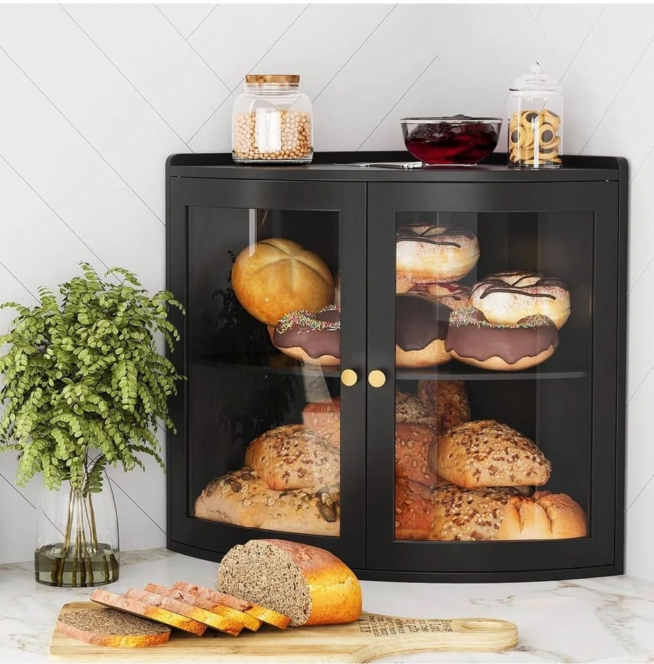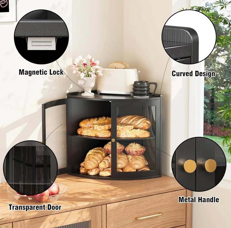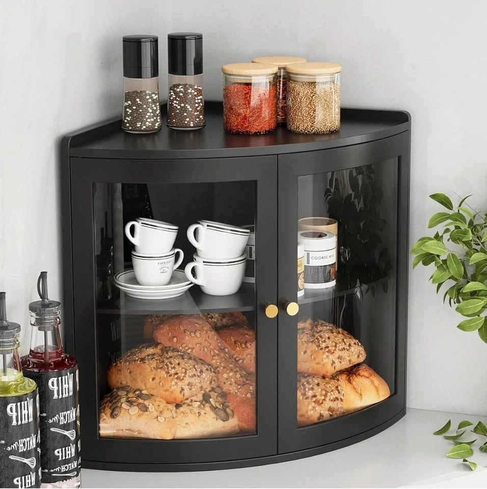 Keep your bread and baked goods fresh with this corner bread box. It's designed to fit neatly into a corner of your kitchen counter, saving space. Let me know if you're interested!