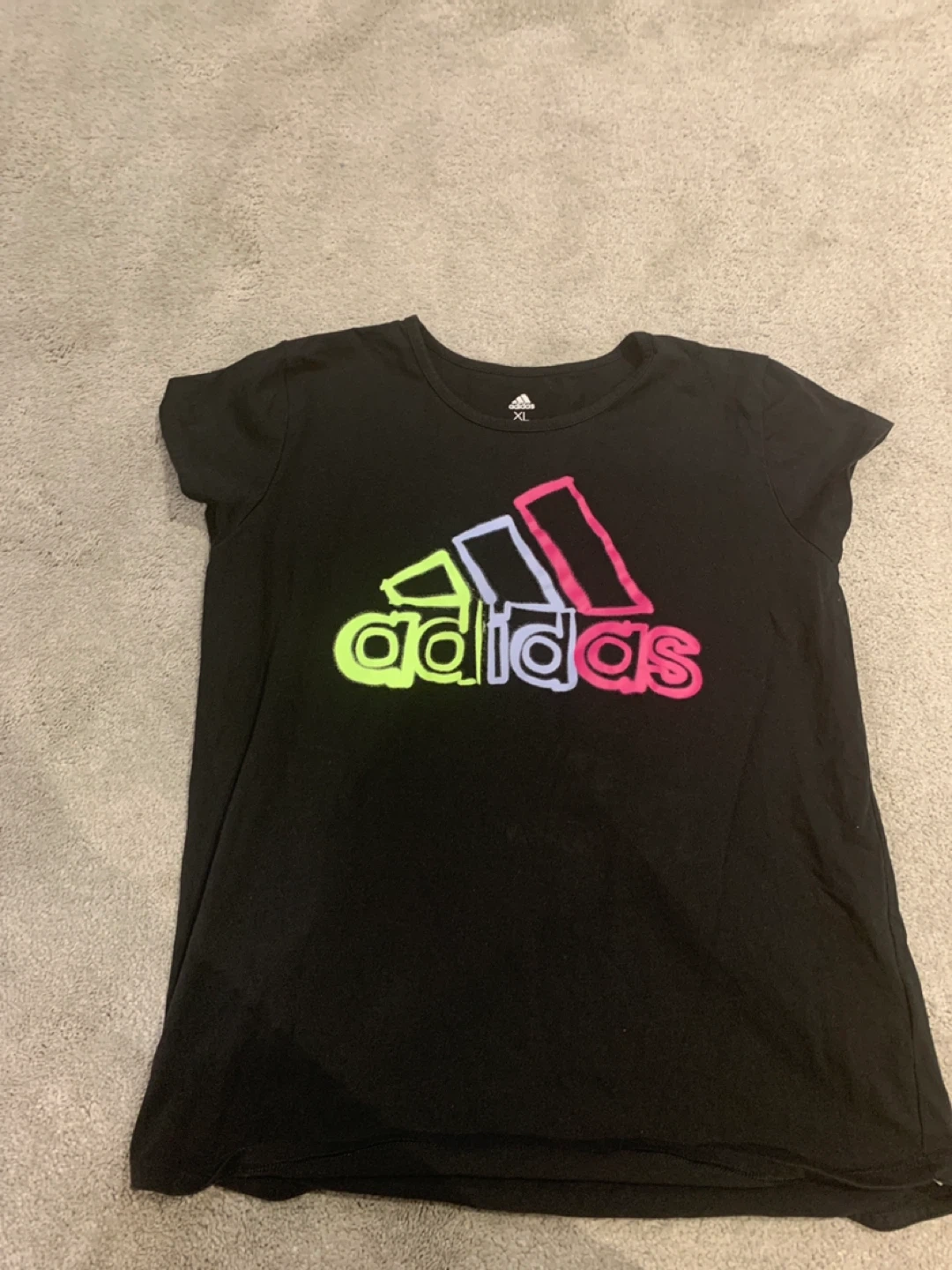 Bundle of three girls' t-shirts featuring Adidas, Nike Dri-Fit, and Puma. Sizes are XL for Adidas and L for Nike and Puma. Great for active kids!