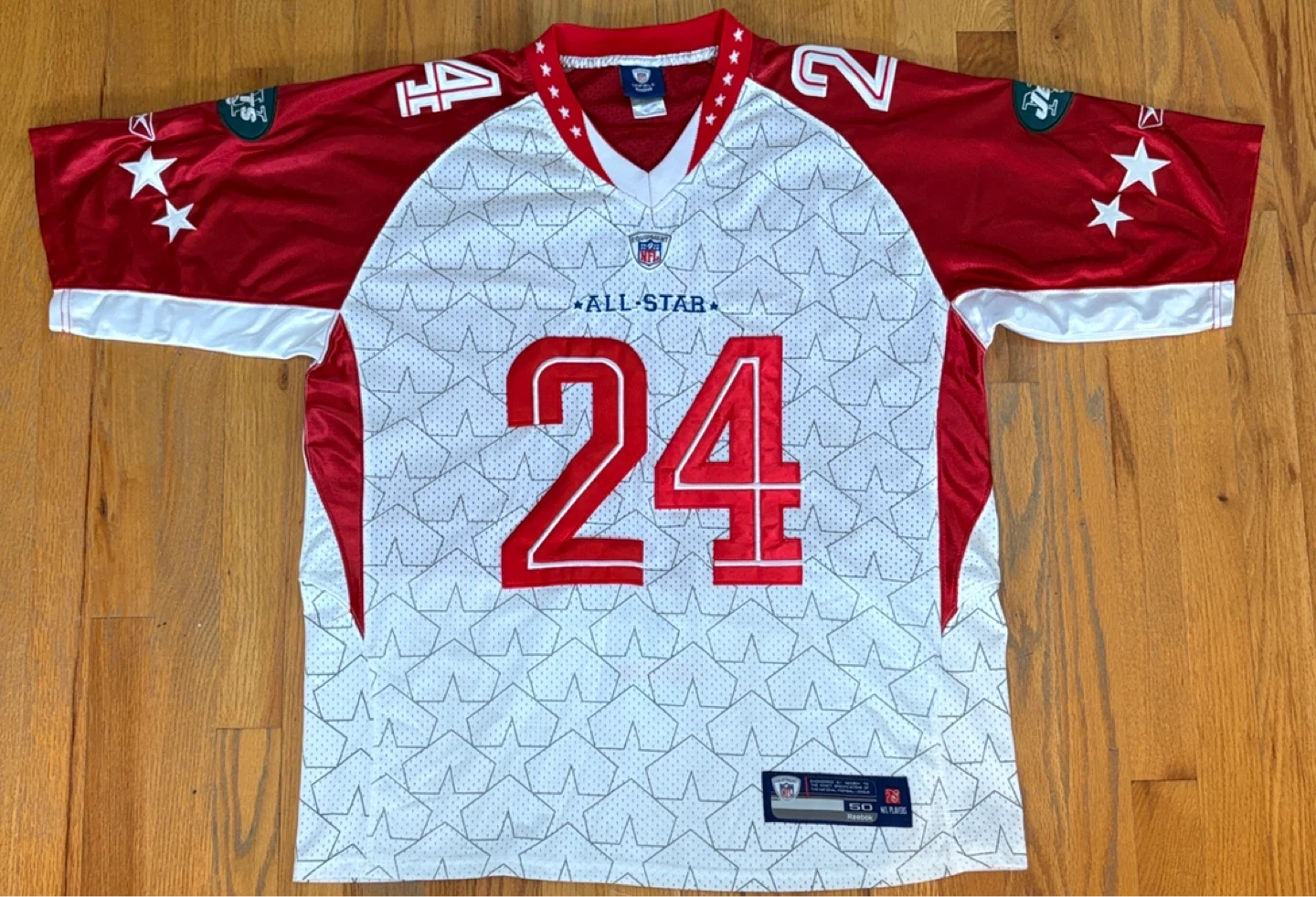 This Reebok NFL All-Star jersey features the number "24" Revis prominently displayed. The jersey includes "ALL-STAR" text above the number.