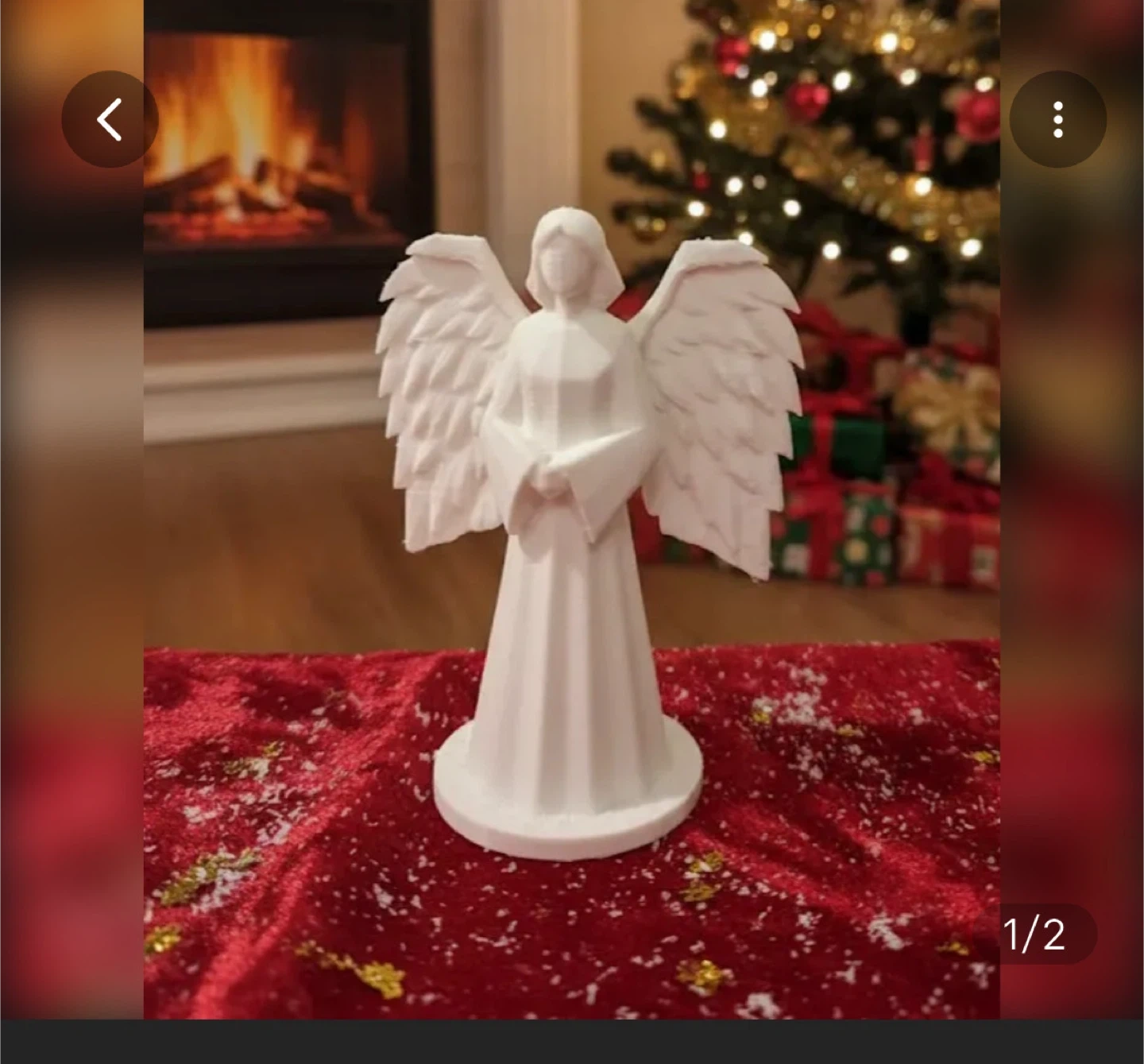Selling a few 3D printed Christmas decorations, including ornaments and a small angel figurine.