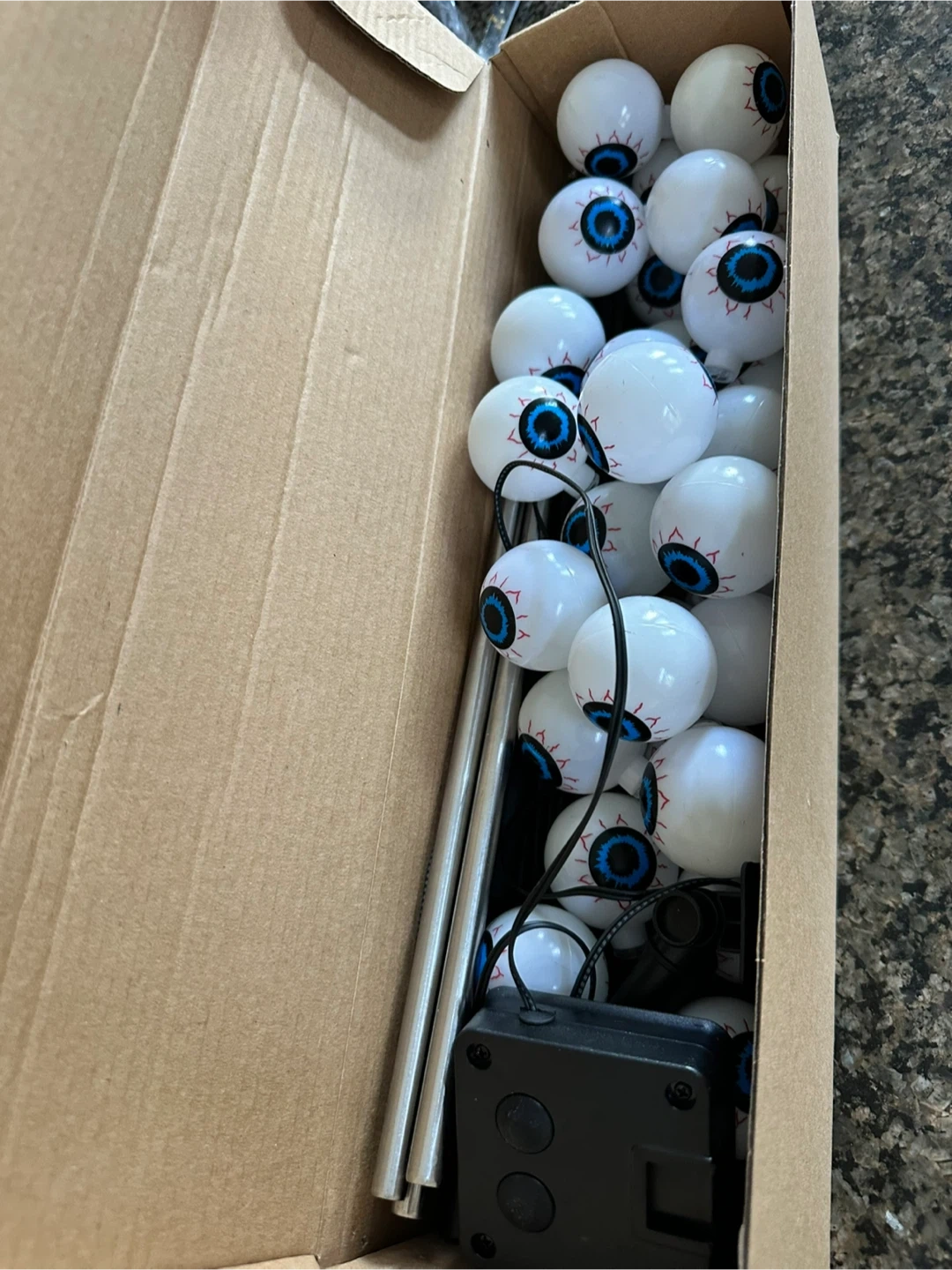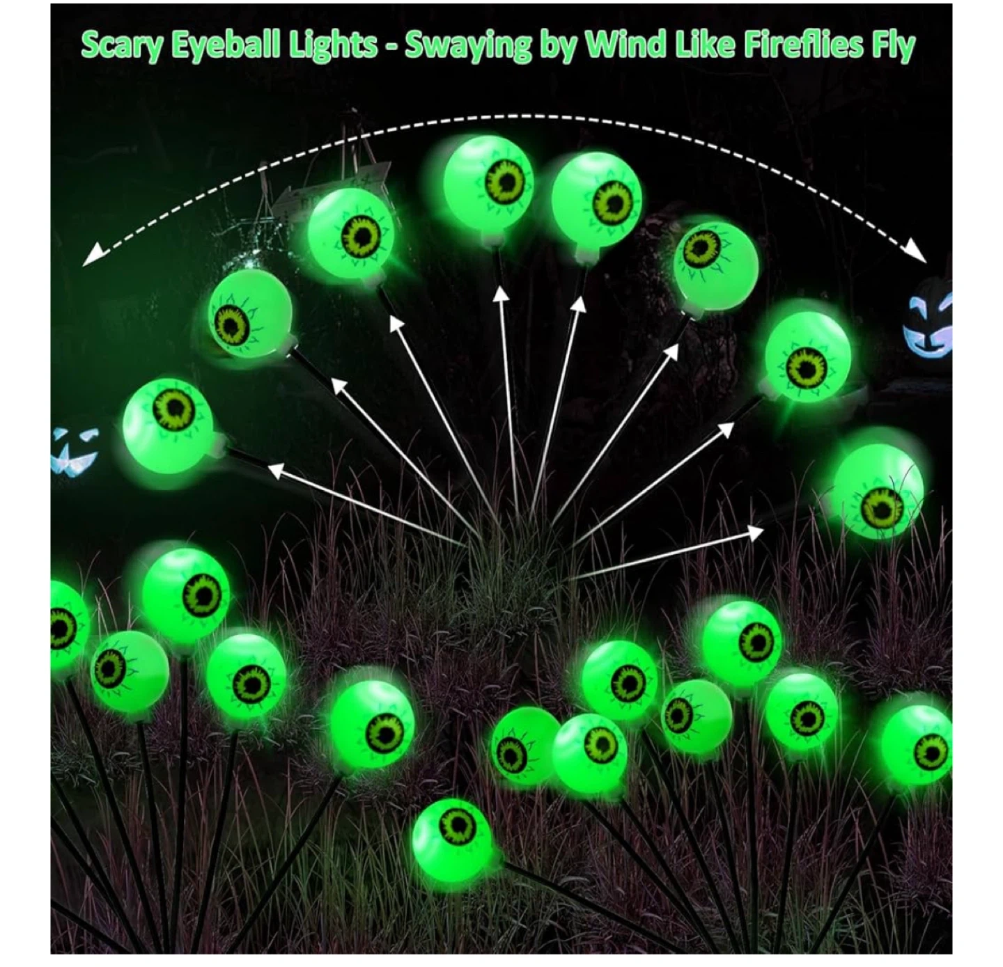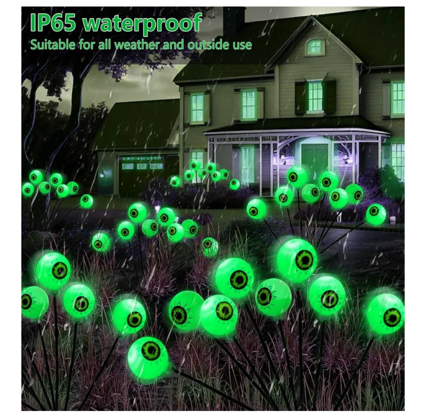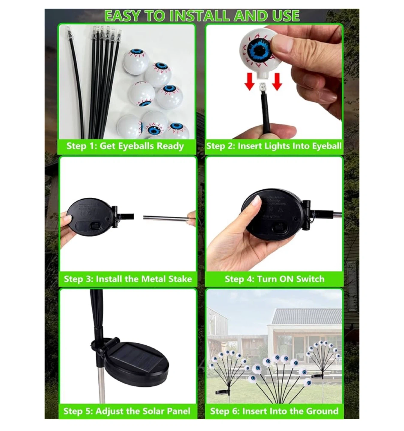 These scary eyeball lights are perfect for adding a spooky touch to your yard! They're solar powered, so they automatically charge during the day and light up at night. They are also waterproof for all weather and outside use. Easy to install and use!