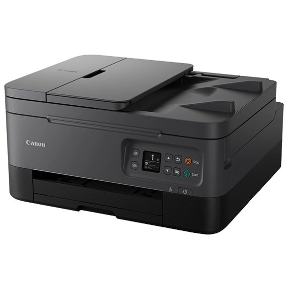The Canon TR7020 is a compact, wireless, all-in-one inkjet printer for home/office, offering Print, Copy, and Scan functions, Wi-Fi connectivity, dual paper feeding (front cassette & rear tray), and an auto-duplexer for double-sided printing, featuring a clear OLED display and Auto Document Feeder (ADF) for multi-page tasks. Ideal for everyday documents and photos with easy setup via the Canon PRINT app.