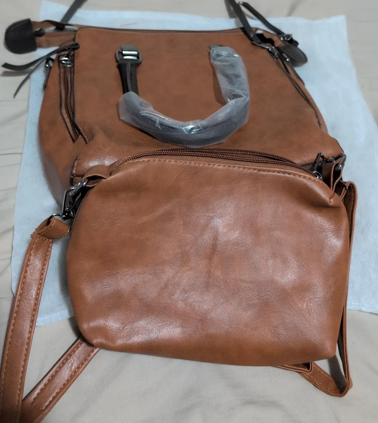 Two in One, Brown Faux Leather Handbag
