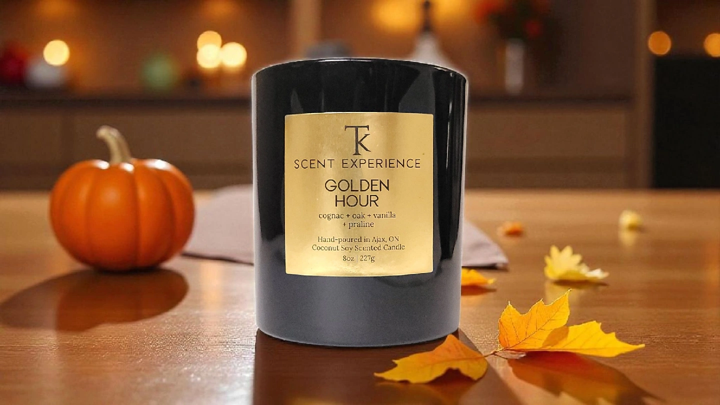15Selling a Scent Experience Golden Hour candle! It's hand-poured in Ajax, ON and is a coconut soy scented candle. The candle is 8oz / 227g and has a cognac + oak + vanilla + praline scent. Burn time approximately 60 Hours.