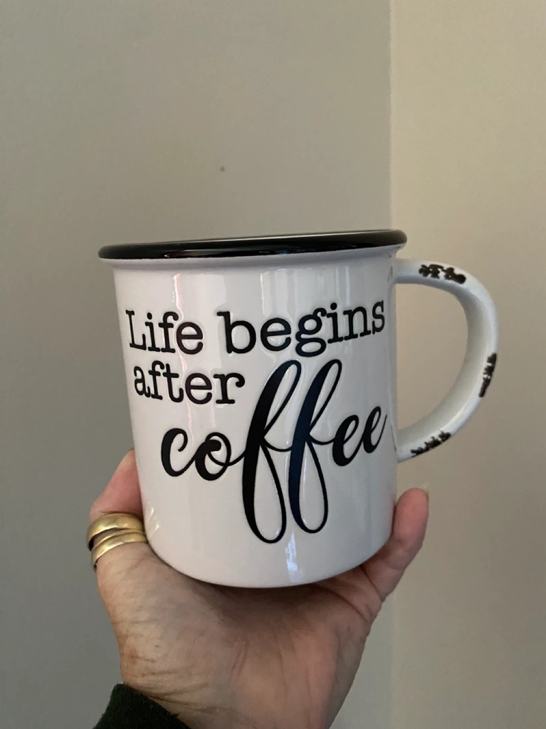 10Keep your coffee warm with this adorable Scentsy mug warmer! It's a white mug with black trim and the saying "Life begins after coffee" on the side. Perfect for your desk or kitchen counter!