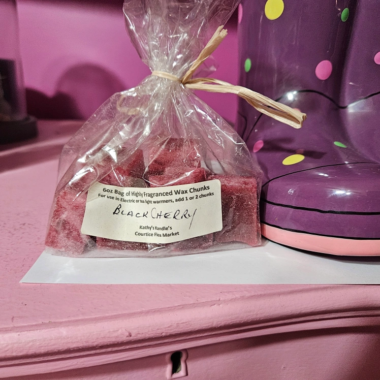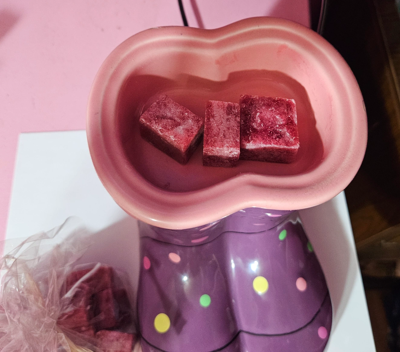 Selling a scentys wax burner, it also lights up along with 6oz bag of highly fragranced Black Cherry wax chunks from Kathy's Kindlie's Courtice Flea Market! These are perfect for use in electric or tea light warmers—just add 1 or 2 chunks to enjoy the scent