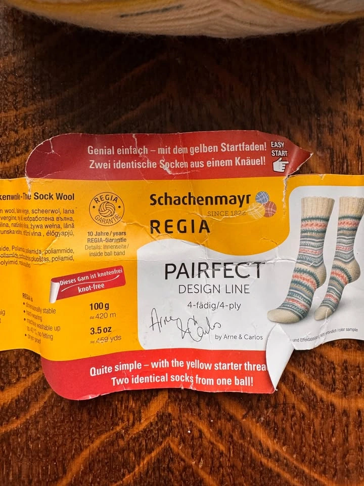 178Schachenmayr Regia Sock Yarn, "Pairfect" Design Line by Arne & Carlos Self patterning yarn 459 yards (420 meters) 100 grams (3.53 ounces) 75% Wool 25% Manufactured Fibers - Nylon / Polyamide