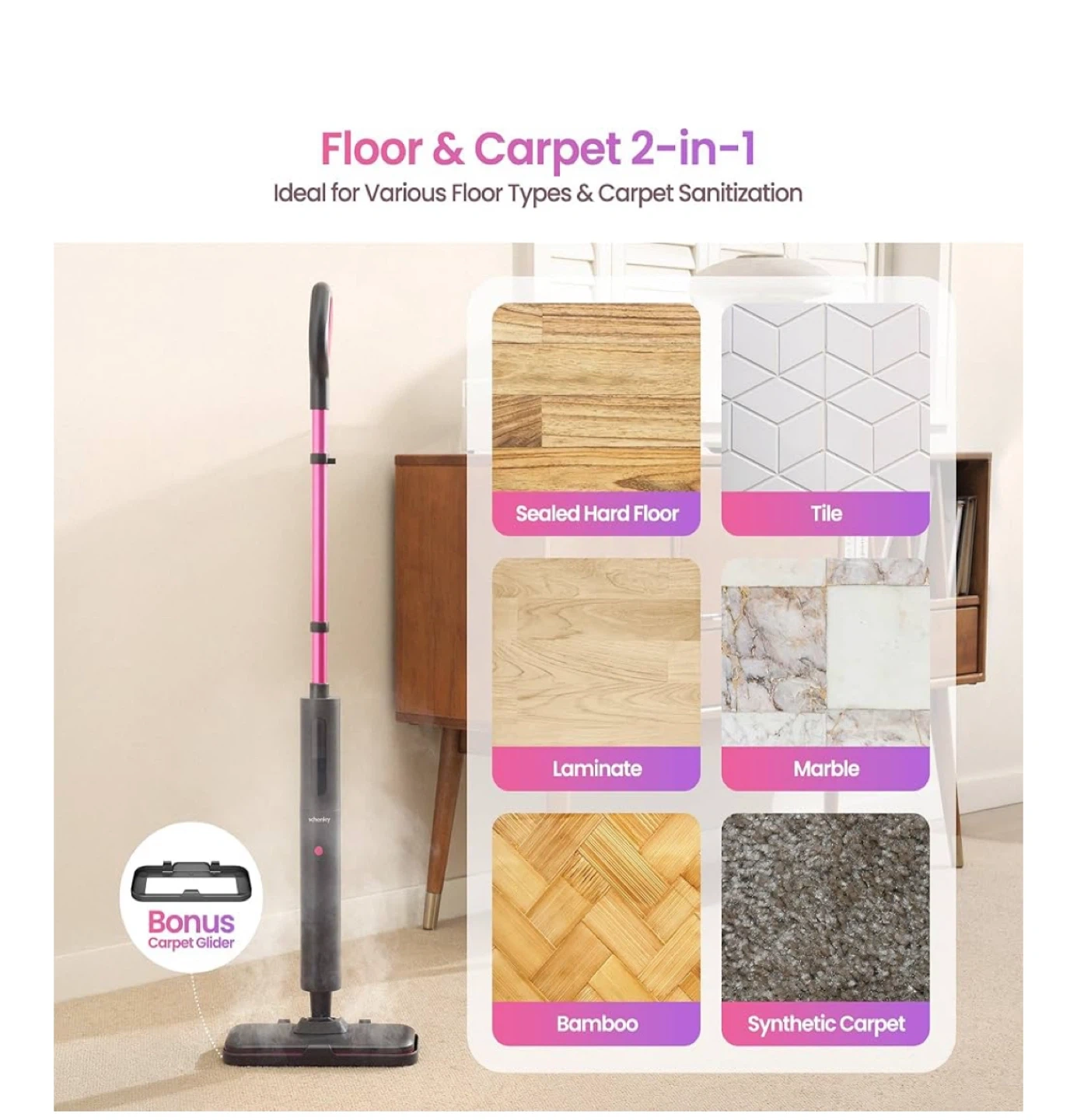 Keep your floors sparkling with this Whizzy Floor & Carpet 2-in-1 steam mop! It's ideal for various floor types and carpet sanitization. The mop tackles your toughest messes, from greasy kitchen spills to stubborn carpet debris.