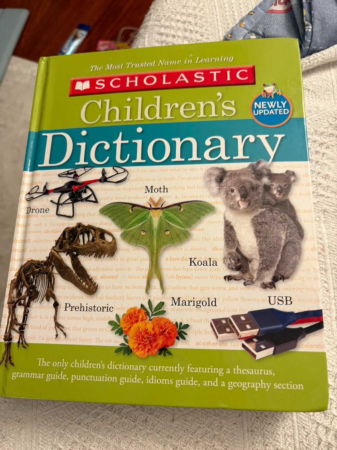 386I'm selling a Scholastic Children's Dictionary. It's a great resource for kids learning about language, grammar, and more! It includes a thesaurus, grammar guide, punctuation guide, idiom guide, and a geography section