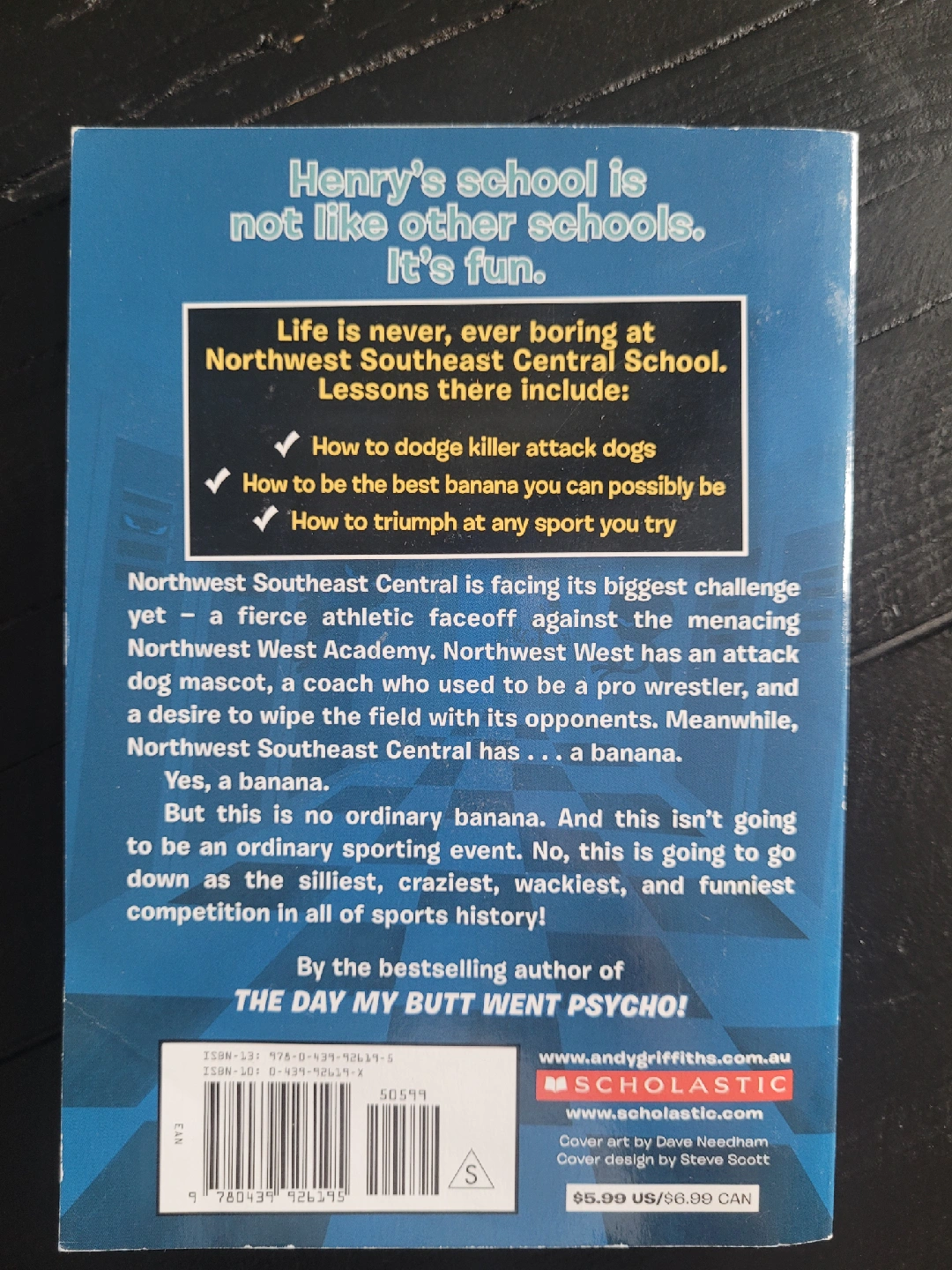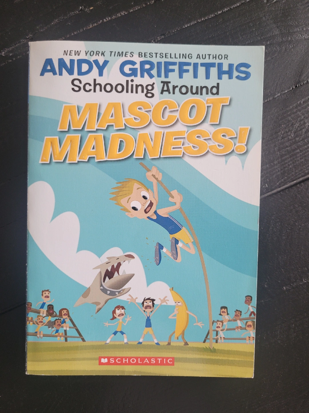 Selling the book 'Schooling Around: Mascot Madness!' by Andy Griffiths! It's a fun read by the bestselling author of 'The Day My Butt Went Psycho!' Perfect for kids who enjoy silly and crazy stories