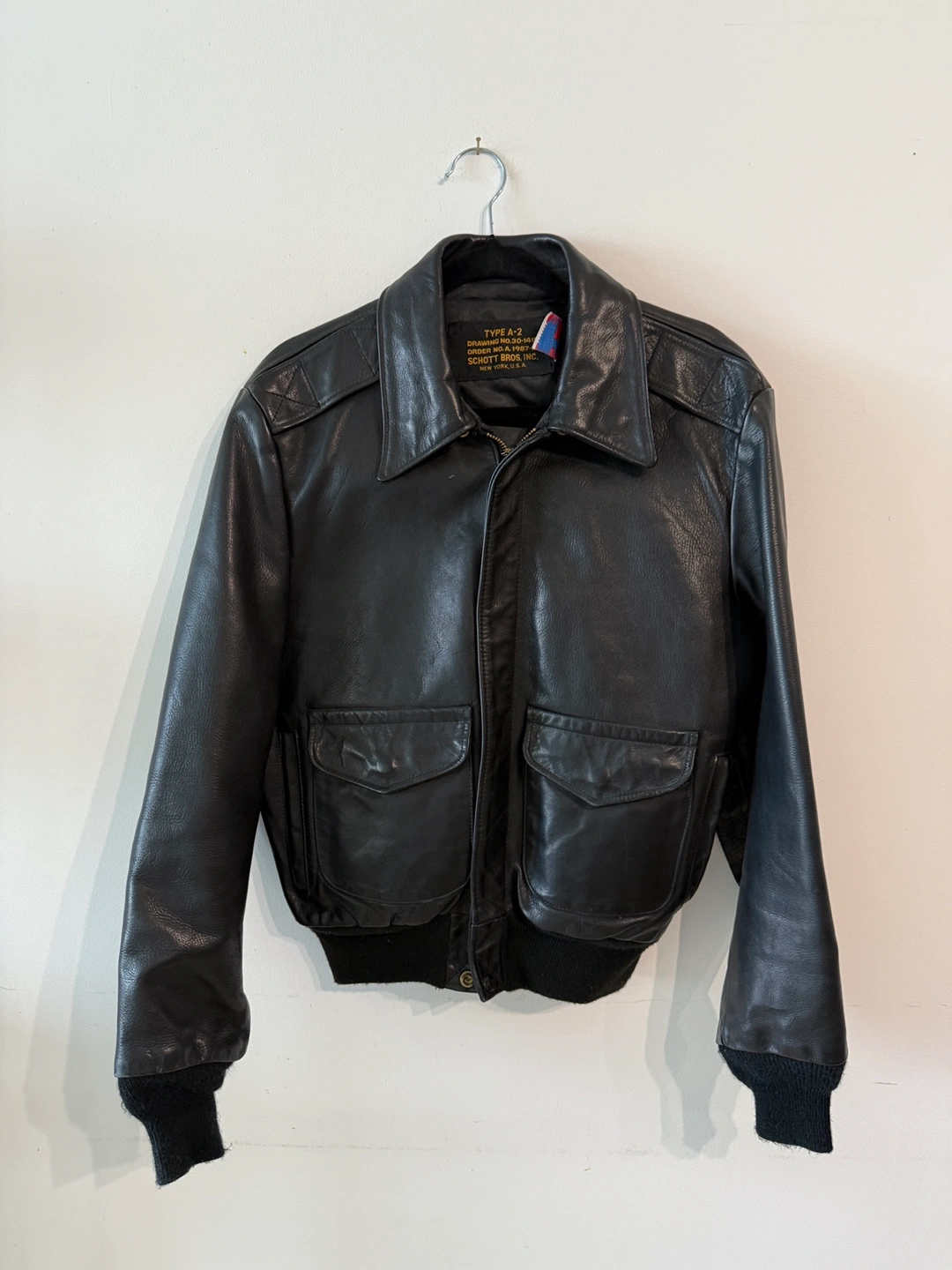 113Authentic Schott Type A-2 flight jacket – Drawing No. 30-1415. Classic piece made in the USA. Tagged size 38 (fits like M). Military style and tons of character. Pickup only – downtown area.
