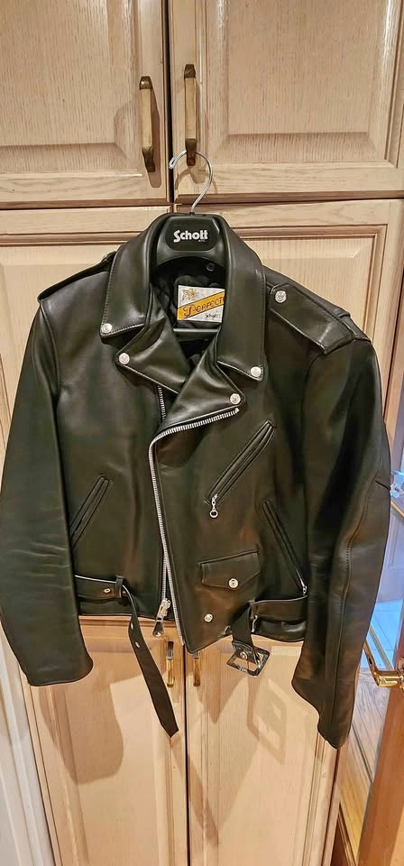 10Schott Classic Perfecto Leather motorcycle jacket Style 118 Size 38 Worn a few times but in excellent condition Originally purchased from SchottNYC.com https://www.schottnyc.com/products/classic-perfecto-jacket.htm Originally Sells for $1020USD, $1700CAD $1350obo