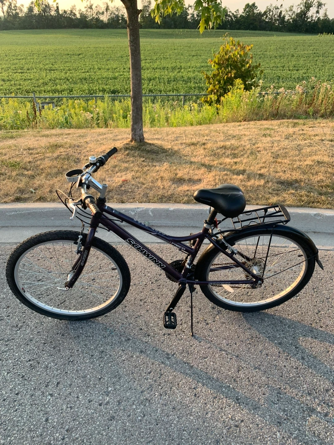 Selling a Schwinn ladies bike. It's in great shape and ready for some fun rides around town or on trails. It has a comfortable seat and a convenient rack on the back for carrying your essentials. Perfect for leisurely rides!