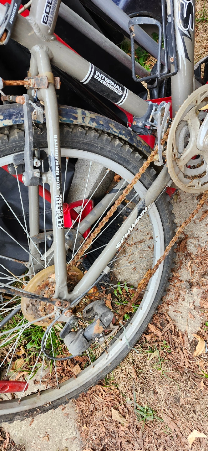 Aluminum frame need tune up tires Selling a Schwinn Gladiator mountain bike. It's a bit rusty, but could be a fun project for someone who likes to tinker! It has an aluminum frame and internal cable routing. price only cash only pickup no delivery 801 O'Connor drive East York outside TD Canada Trust bank door .