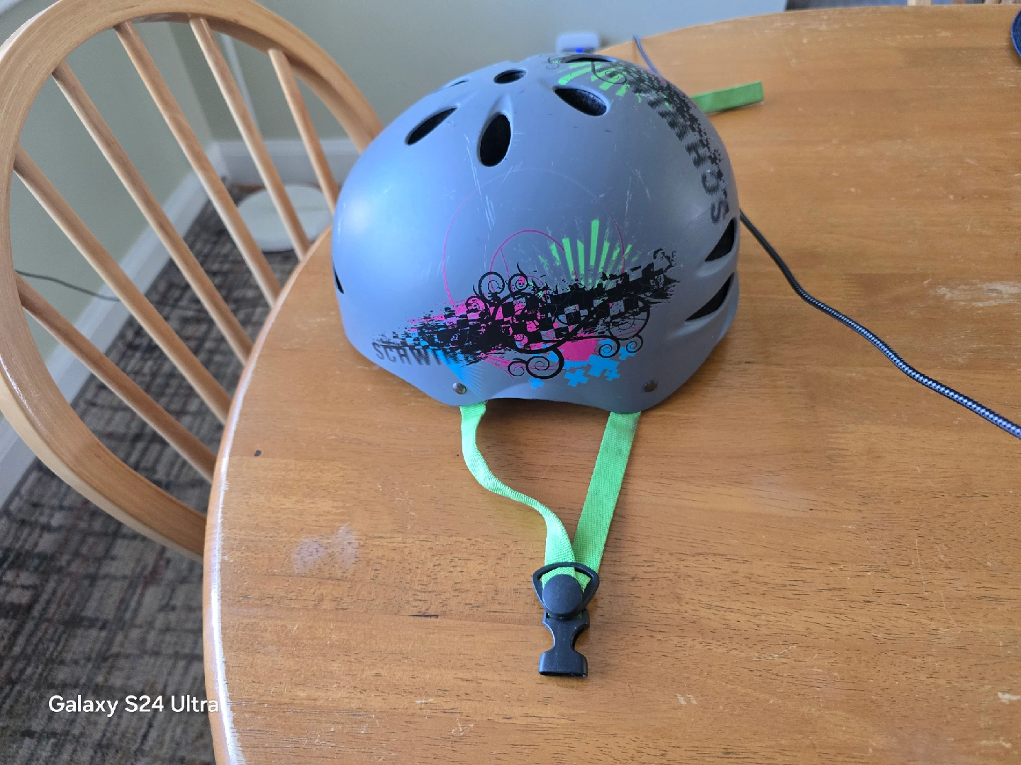10Selling a grey Schwinn helmet. It has a fun design on the sides. Perfect for biking, skating, or scootering! Great for keeping safe while having fun