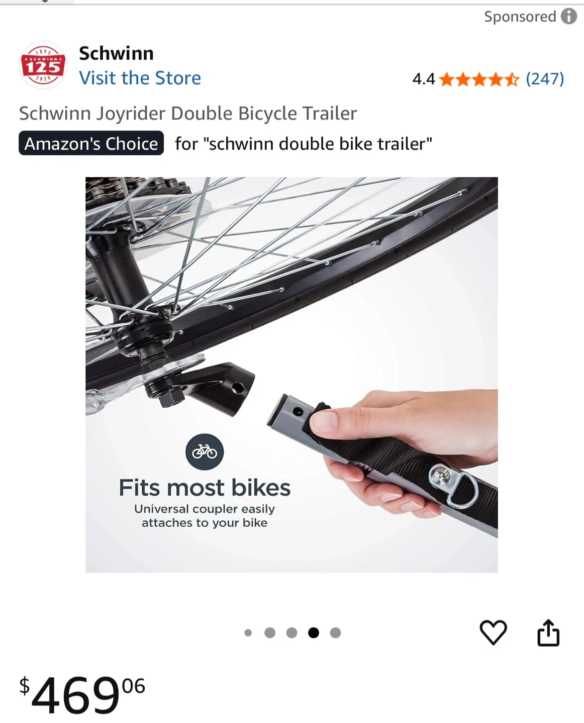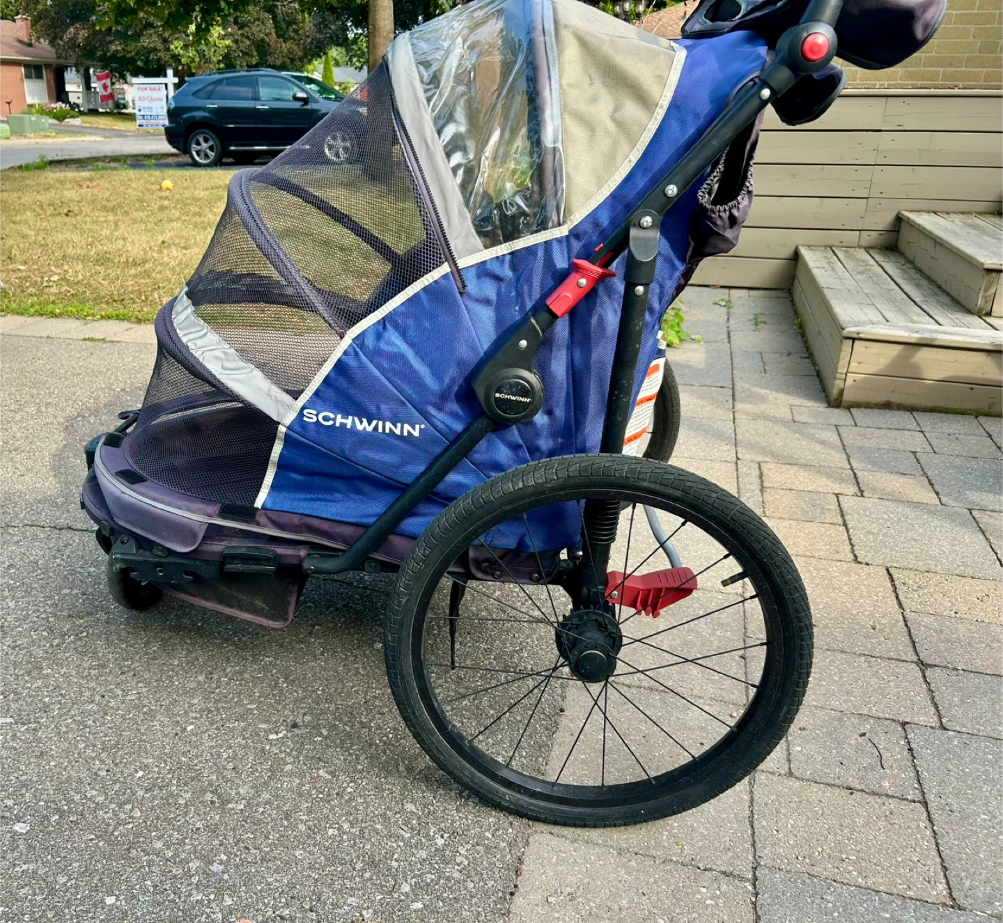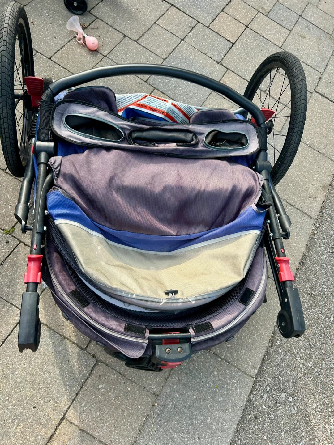 Selling a Schwinn Joyrider Double Bicycle Trailer! It's in great condition and ready for new adventures. This trailer fits most bikes and has a universal coupler that easily attaches. Easy to use in stroller mode or for your bike . It comes with a rain cover and a flagpole . I also have a coupler to it for your bike to attach it . It's a great way to bring the little ones along for a ride! It sells 470+ taxes, and the coupler is an additional purchase. I will sell everything for $300.