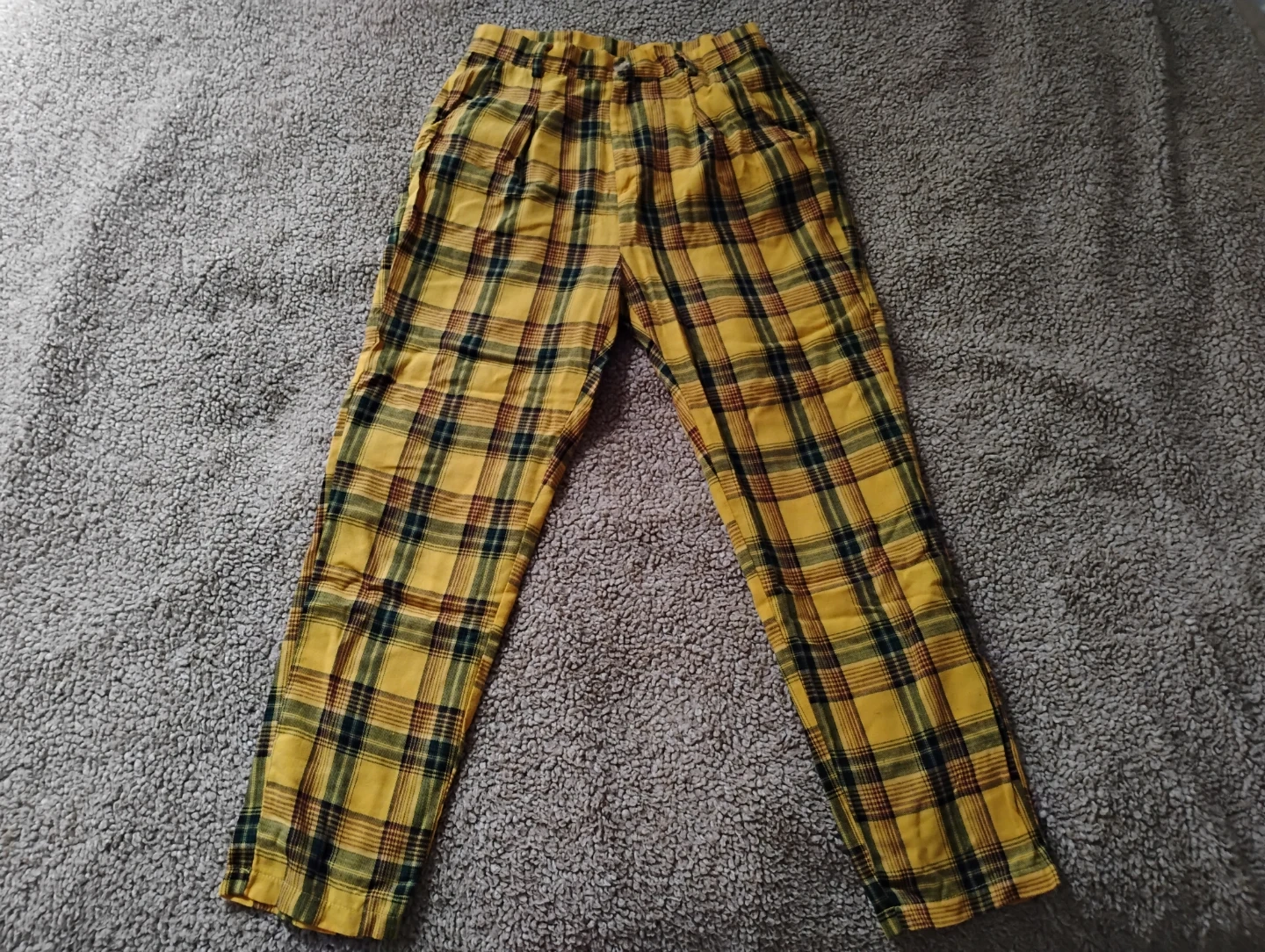Yellow Plaid High-to-Mid Rise Pants - SHEIN - Small