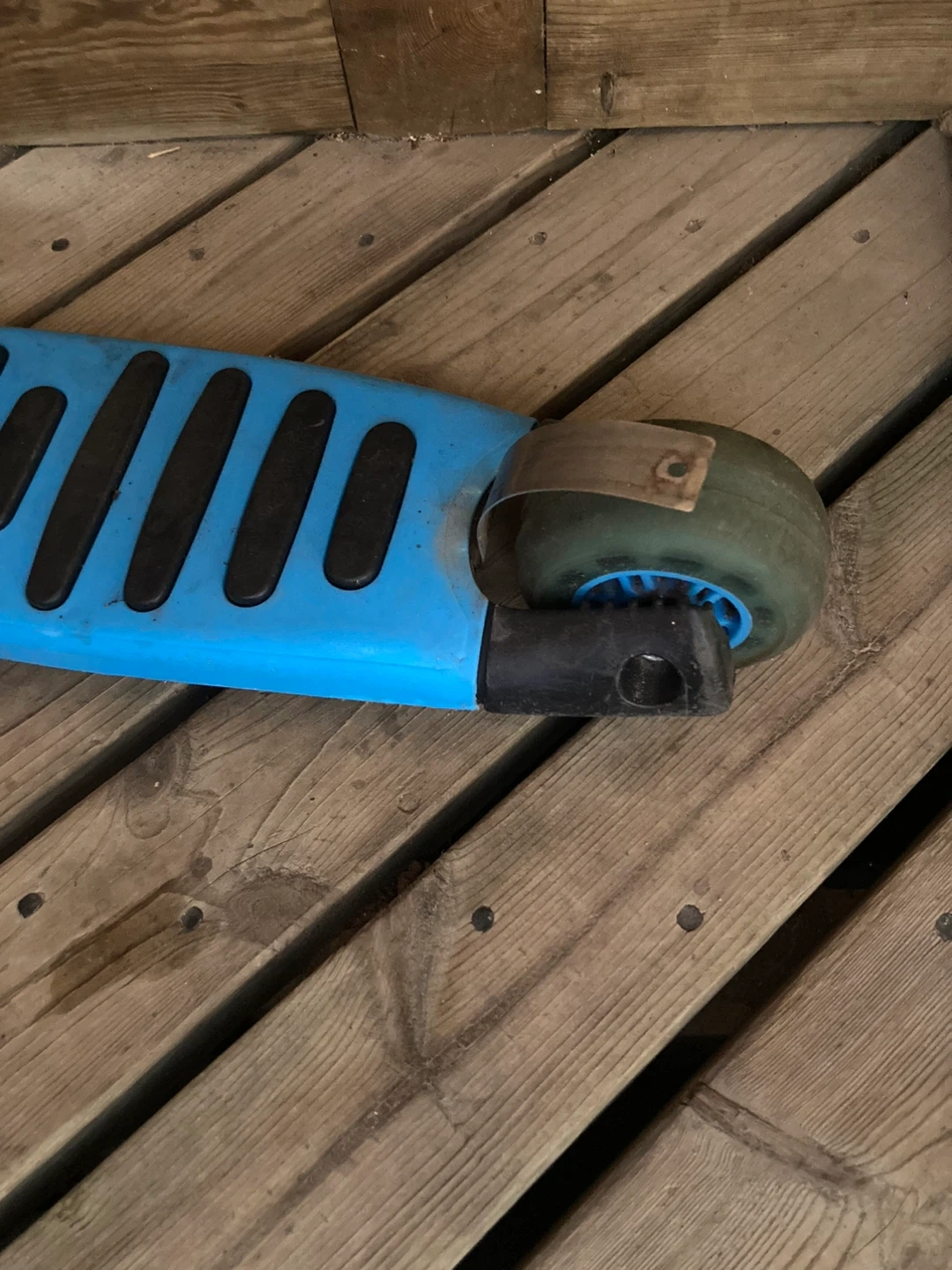 I'm selling a blue 3-wheel scooter! It's in good condition and ready for a new rider. Perfect for kids learning to scoot around the neighbourhood. It is missing the plastic cover over braked but the brakes still work. Adjustable handlebar.