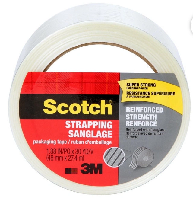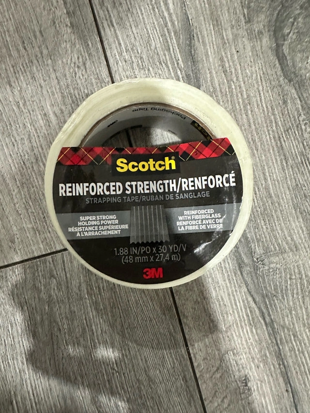 I'm selling a roll of new Scotch Strapping Tape, reinforced with fiberglass for super strong holding power. It's 1.88 inches wide and 30 yards long, perfect for all your packaging needs. Please note that this roll has been previously used, but is still in good condition with plenty of tape left for your projects. I don't want it to gather dust on my shelves when it can be used by someone else. Here are the specs: * Brand: Scotch * Type: Strapping Tape * Width: 1.88 inches (48 mm) * Length: 30 yards (27.4 m) * Features: Reinforced with fiberglass If you're reading this, it's still available!
