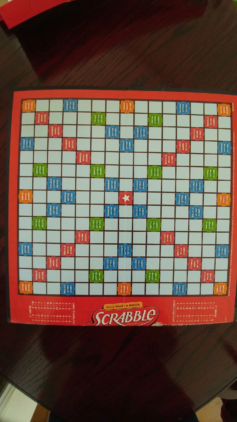 Selling a Scrabble crossword game. It includes the board, letter tiles, and tile racks. Great for family game nights!