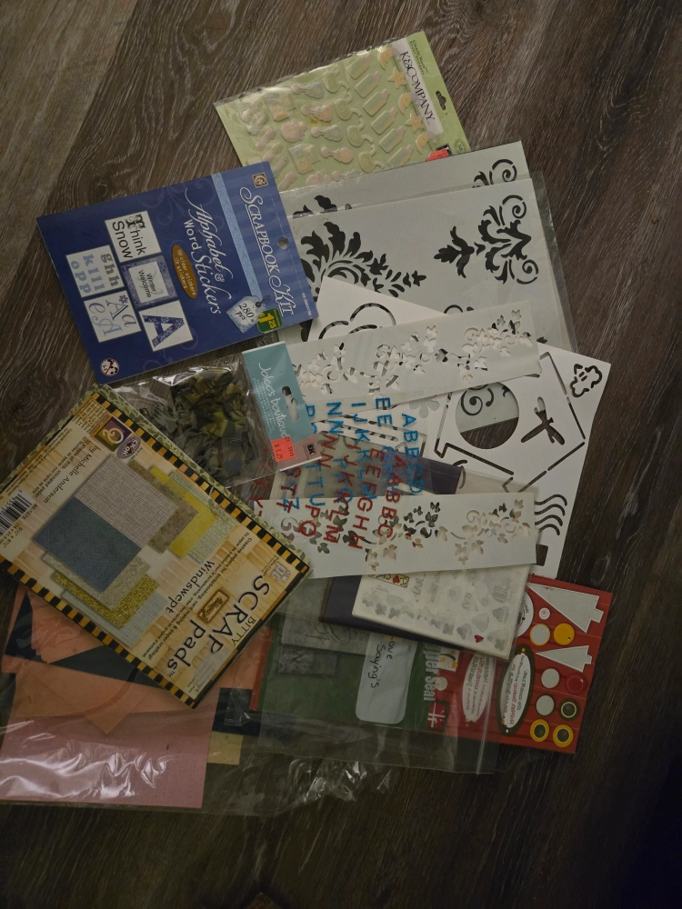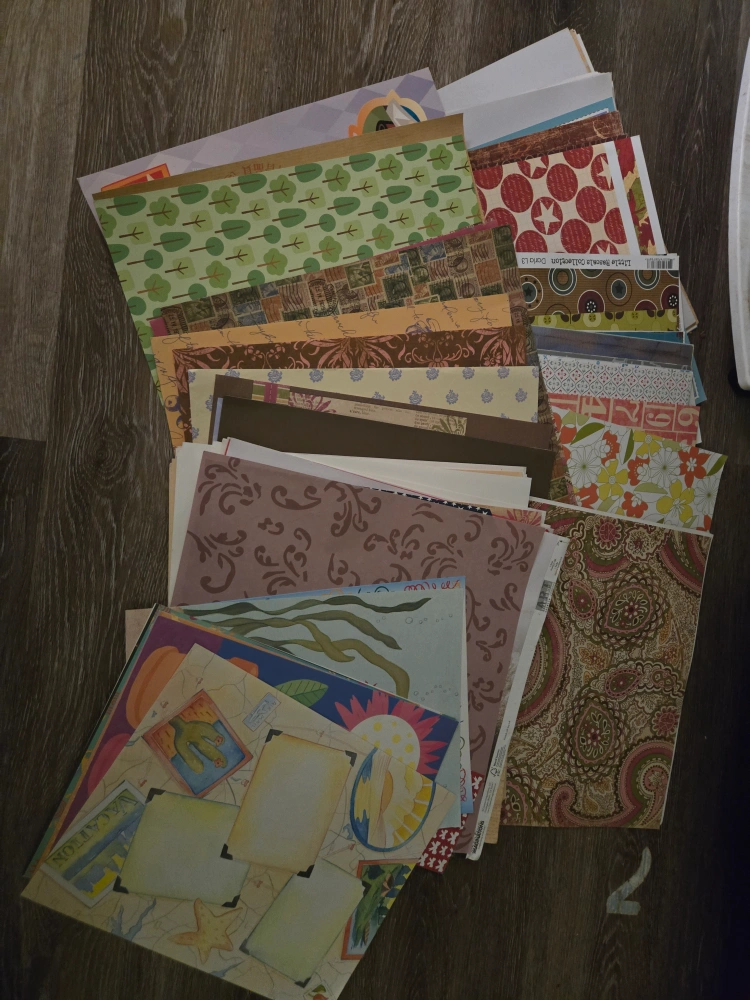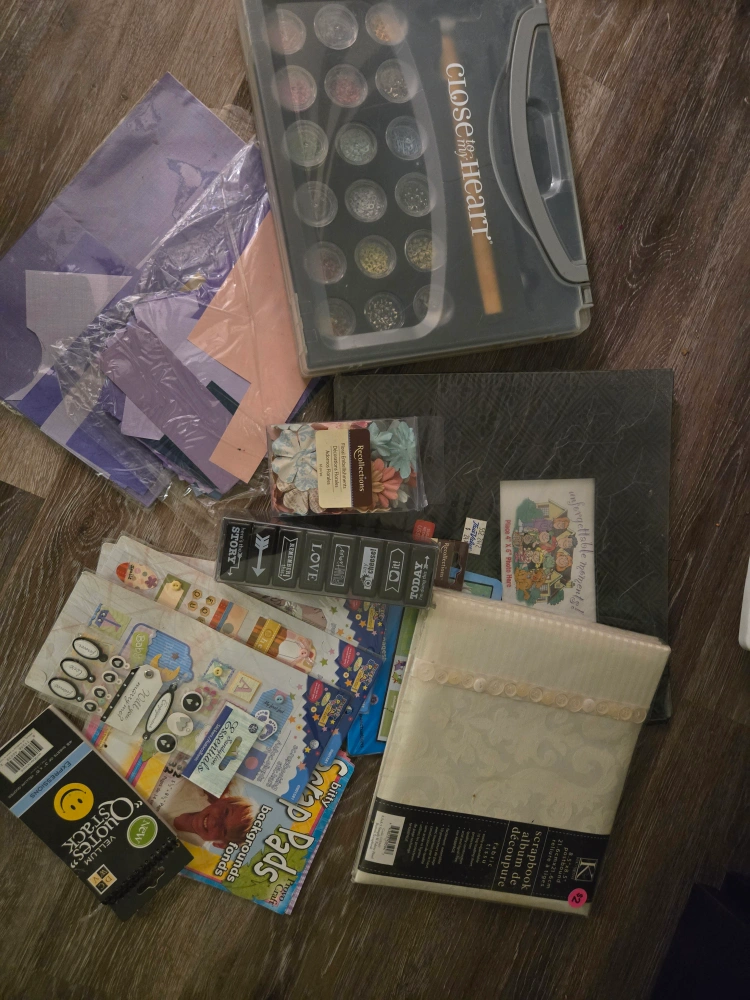 Selling a large lot of scrapbooking supplies! Includes a variety of patterned papers, embellishments, stickers, and more. Perfect for all your crafting projects