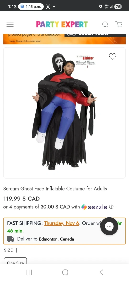 60Get ready to spook everyone with this Scream Ghost Face inflatable costume for adults! It's a one-size-fits-all costume that's sure to be a hit at any Halloween party. Originally bought for $119.99 CAD from Party Expert.