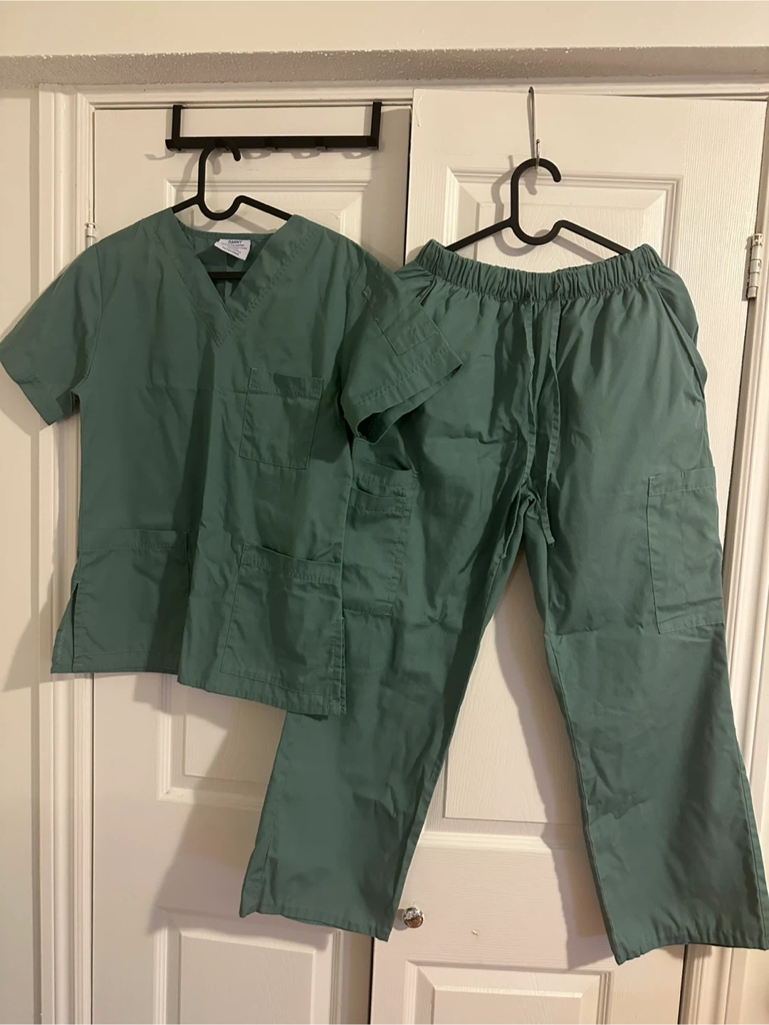 Selling scrub set, including both the top and pants! Perfect for medical professionals or students. Brand new set/ used like new set for sale. Pic 1-3: 1 set of Brand new green Danny scrub 65% polyester 35% cotton, unisex xxs (fit for female XS/S, height 155-165cm) $30 for whole set Pic 4: same scrubs as pic 1, 2 sets of used like new Danny scrubs; $15 for each set Pic 5: 1 set of brand new S size wine red female scrub; $20 for the whole set $75 if you buy all 4sets (Delivery charge not included) Pick up Steels x McCowan