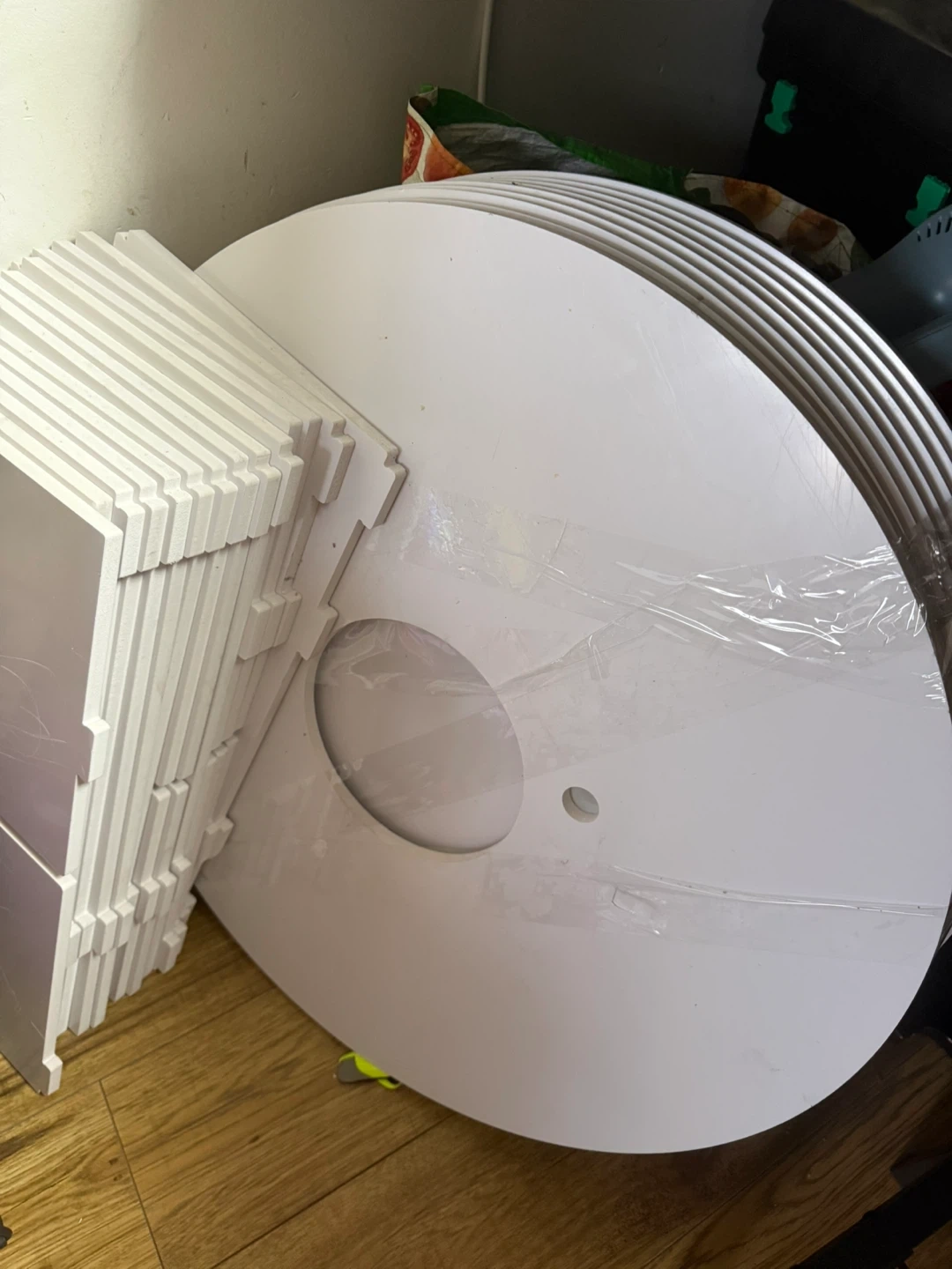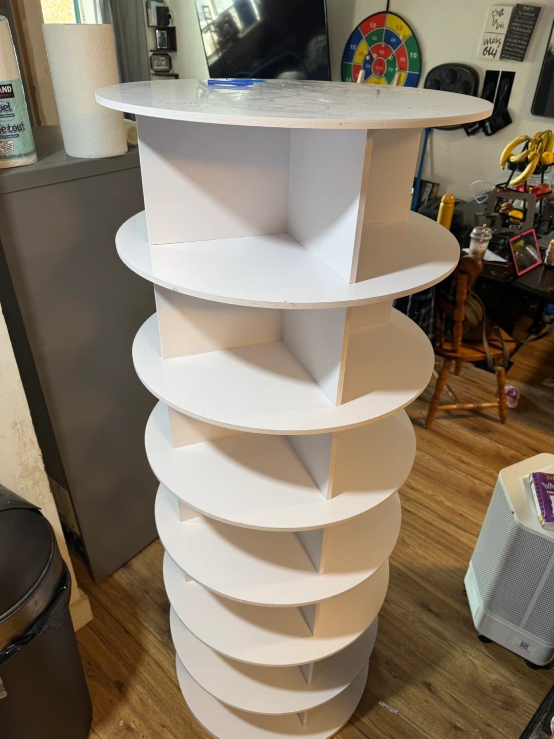 Selling a white round rotating shoe rack! It's perfect for organizing your shoes and saving space. It's in great condition and ready for a new home. Would be great for displaying other items as well!
