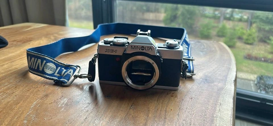Minolta XG-1 35mm film camera. Comes with 2 lenses, external flash, carrying bag, strap, and 1 roll of film. Shutter fires and camera is functional. Great overall cosmetic condition. Viewfinder has slight haze (does not affect photos). Everything included as shown in photos. Great for beginners or anyone getting into film photography. Selling as-is.