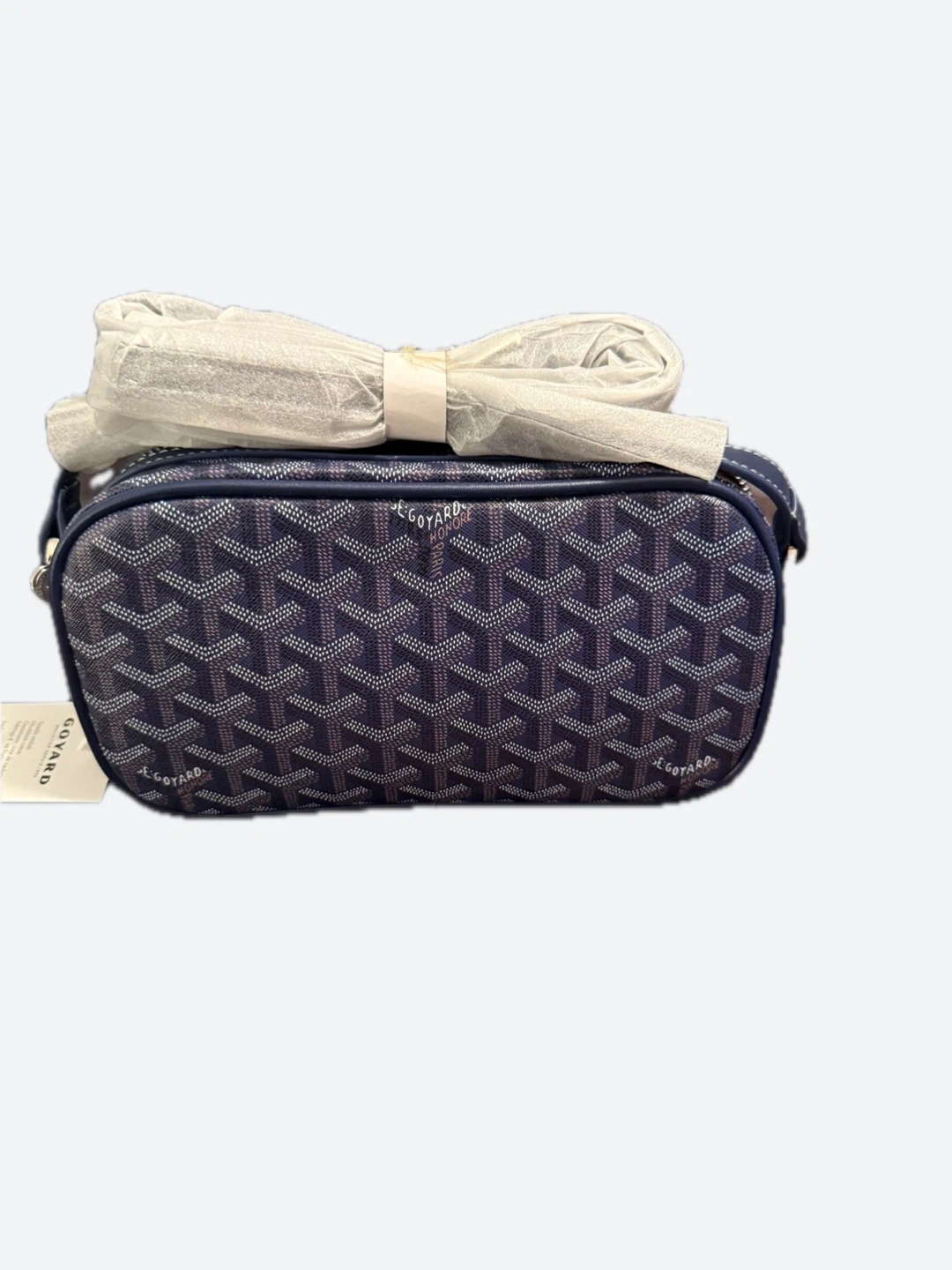 This is a Goyard crossbody bag with the iconic chevron pattern. It comes with a removable strap and dust bag. Made in France.